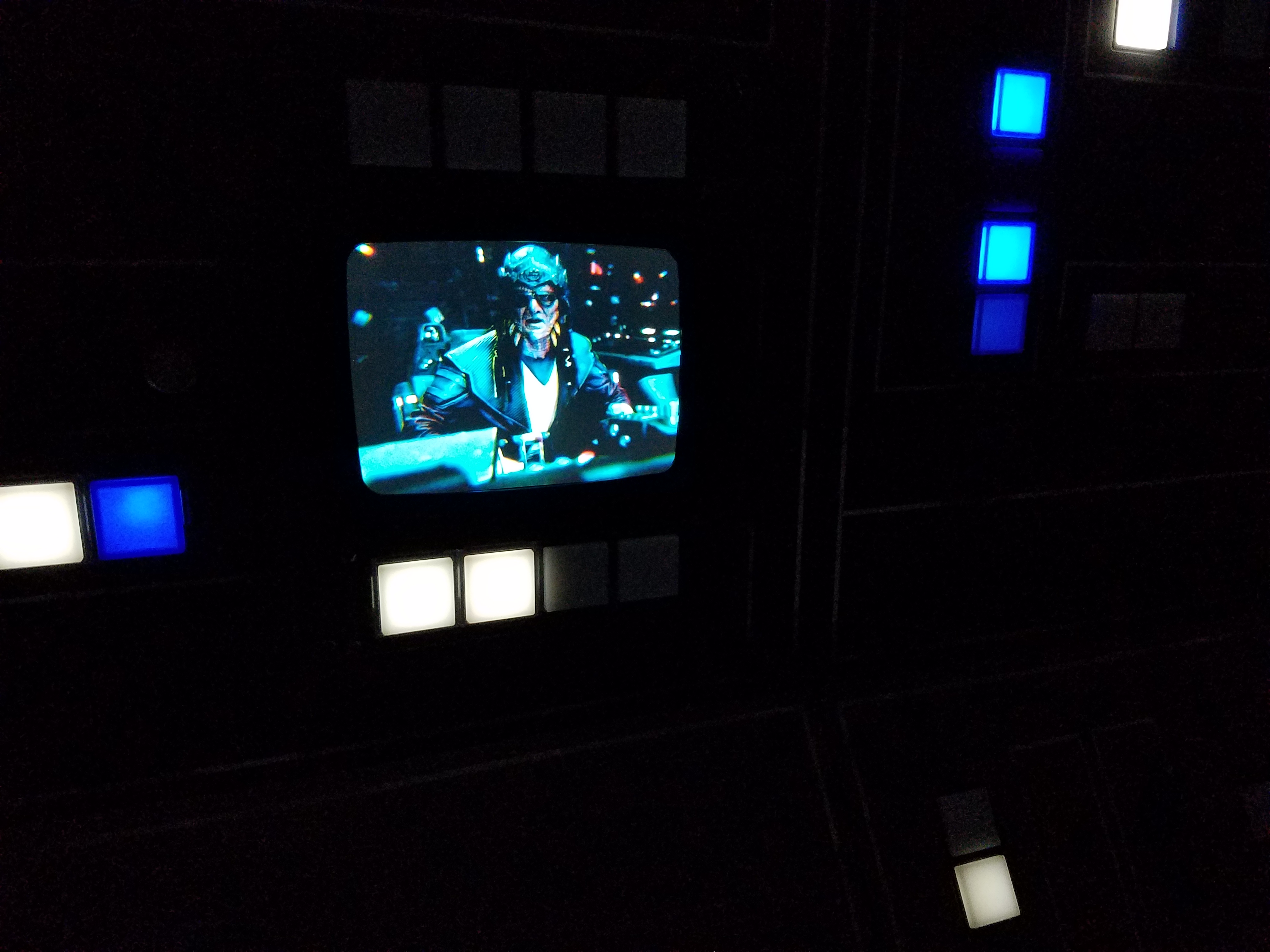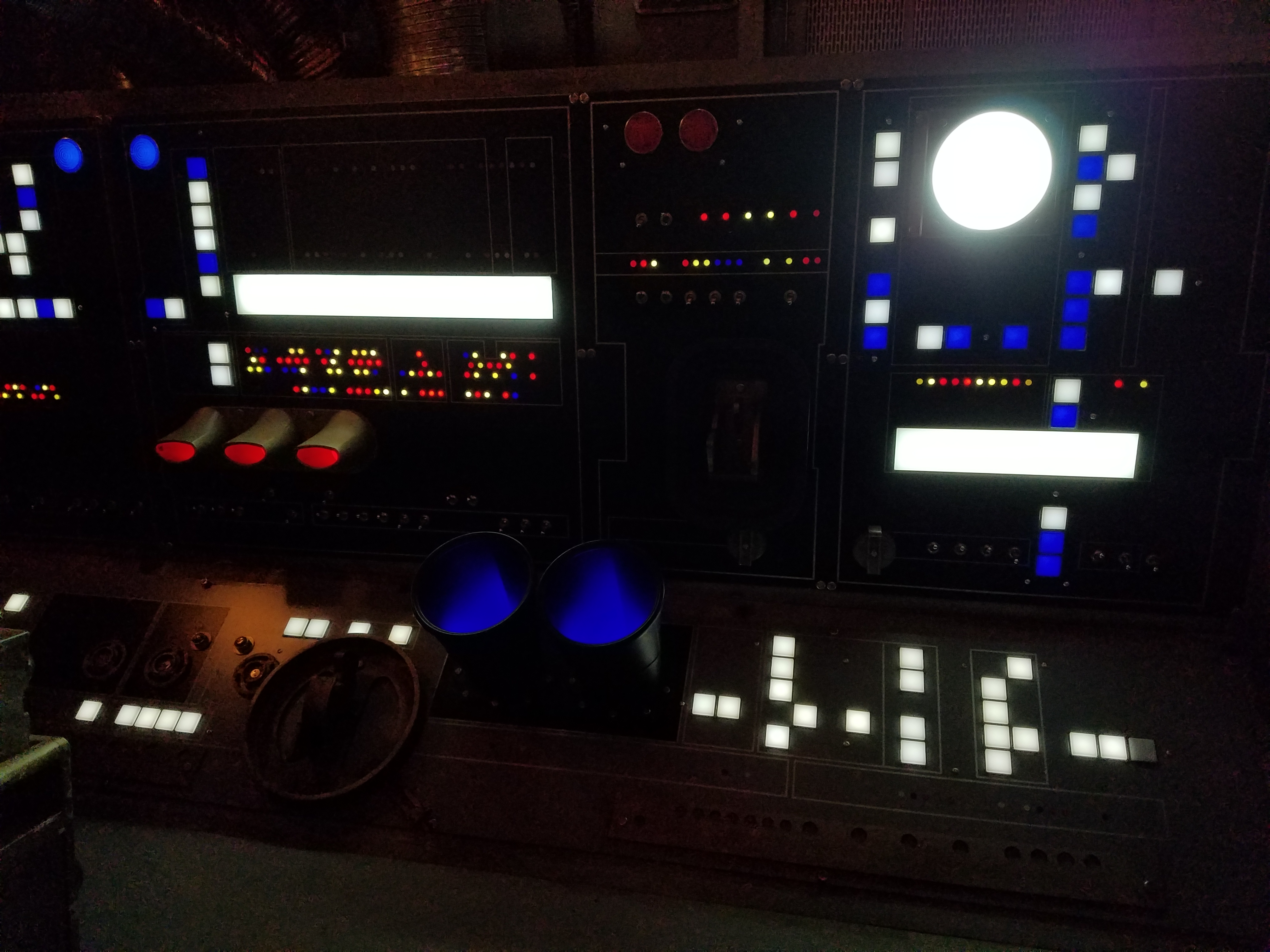 The cockpit of the ride is three rows of two, in the same order: Pilots, Gunners, Engineers. The left Pilot controls the left and right motion, while the right Pilot controls the up and down motion, and also is in control of the Hyperdrive. The Gunners can choose between manual or automatic aiming. The Engineers hit whatever buttons light up in order to “repair” the ship, and also are in control of the harpoons.