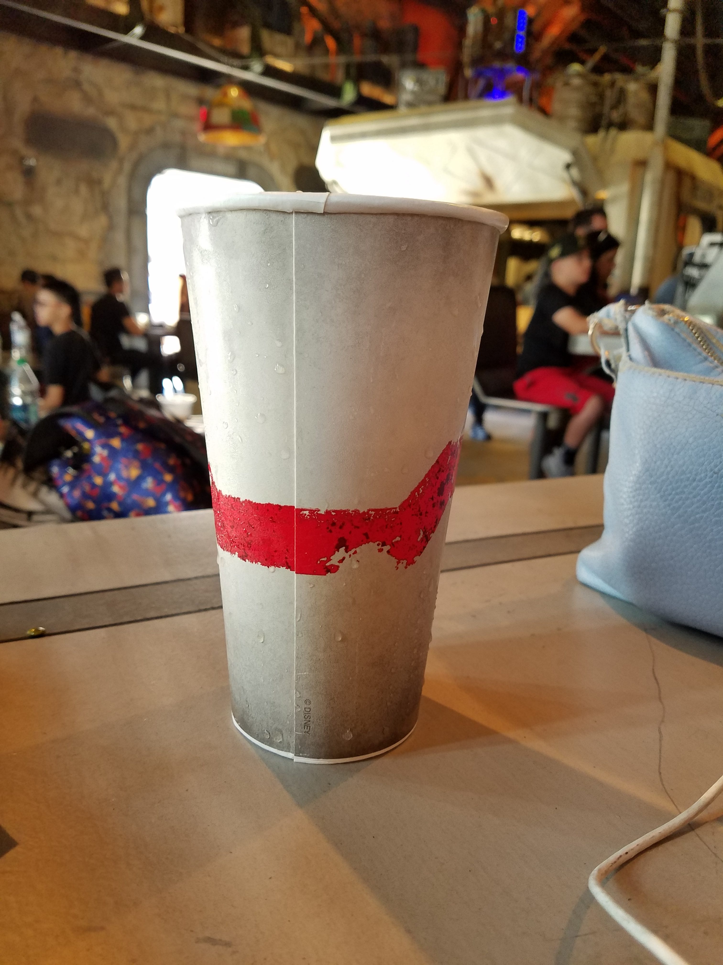 We all agreed that the Blue Milk from the Milk Stand was better than the Blue Milk from Oga’s Cantina. I guess the slushy consistency took away that chalky taste we had gotten before. Now it had more of a fruity taste. But I think I would have enjoyed it more if I had a straw to drink it with. Drinking a slushy without a straw is awkward.