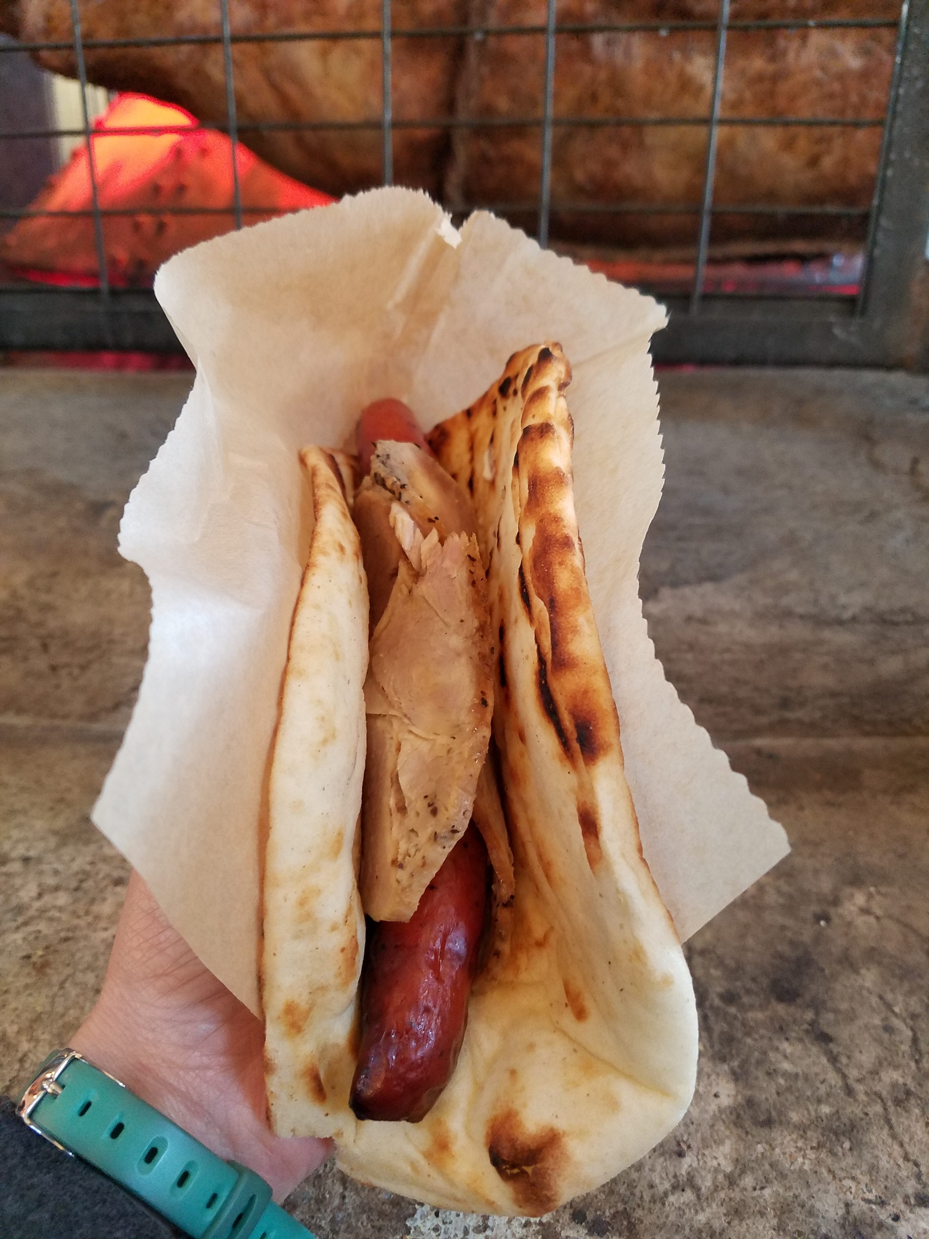 The Ronto Wrap was basically a hot dog but wrapped with pork and in a huge pita instead of a hot dog bun. I thought it was pretty good, but Josh didn’t really like it, and I struggled to finish it by myself, as it was quite large. Corgi let us try some of the Nuna Turkey Jerky that he had ordered. None of us really liked the jerky very much though, as it was difficult to chew.