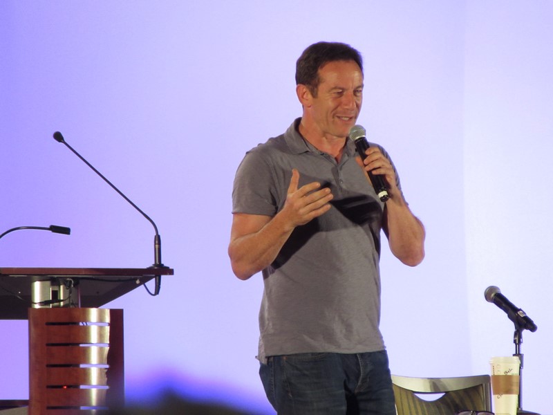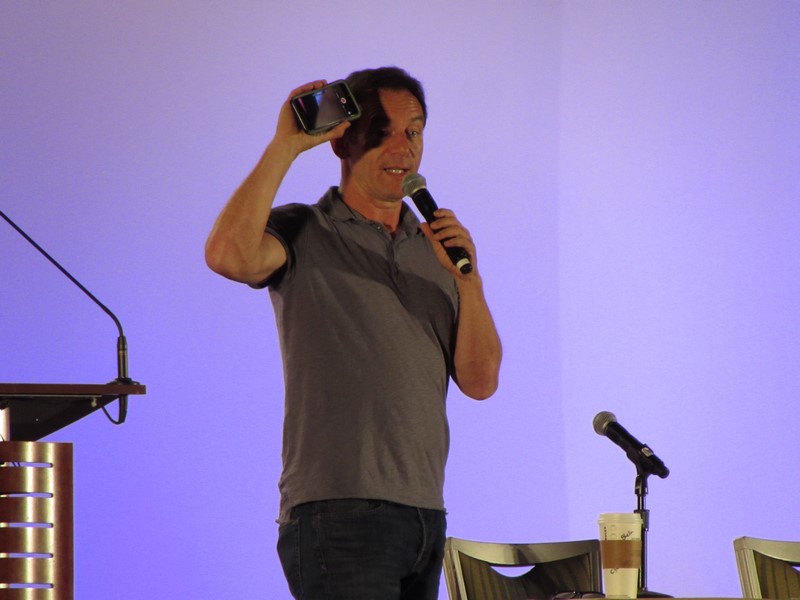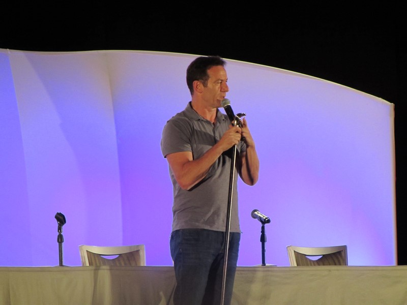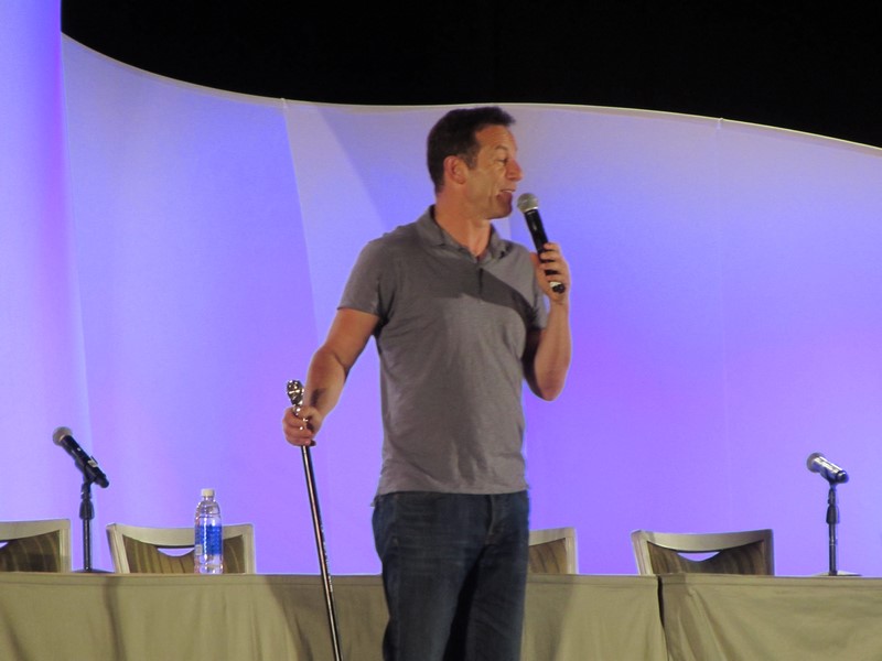 The first real celebrity panel Violet and I saw was Jason Isaacs. He is not someone I am extremely familiar with. His most notable work is probably playing Lucius Malfoy in the Harry Potter movies and Col. Tavington in The Patriot. I personally know him mostly from Armageddon as the scientist that comes up with the plan to save the world from the impending asteroid and as a cop from the short-lived show Awake where he lived in two “dream” worlds, and he didn’t know which one was the real one.