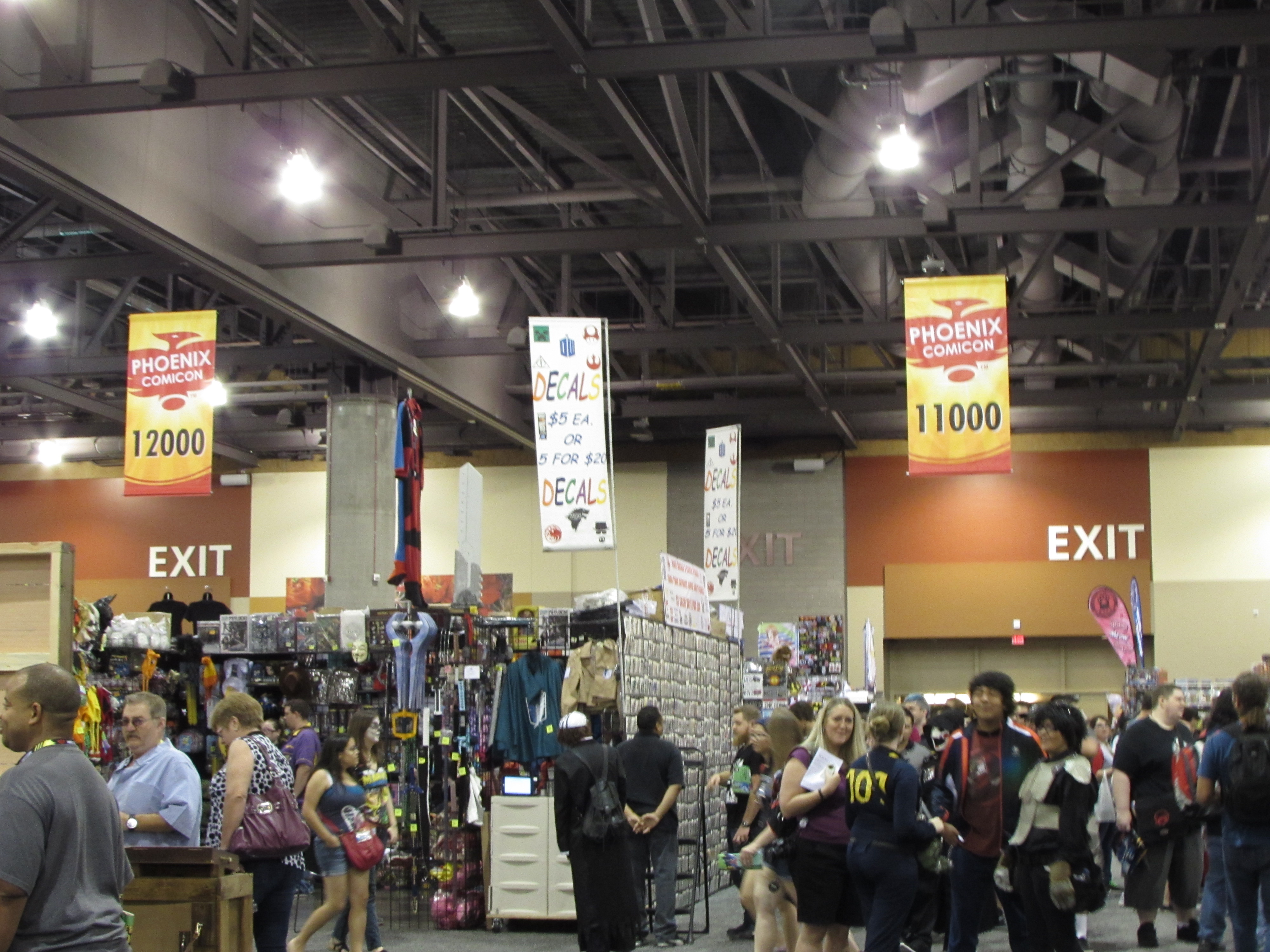 Heading to the car, we made the 15 minute drive from the hotel. We headed to the parking garage. The parking attendant was in a chipper mood. He warned us though–“Darth Vader was spotted at the con, be careful,” he said. I felt confident we would run into Vader. Probably more like 15 Vaders, not to mention the countless Stormtroopers we were bound to spot. We headed out to the Phoenix Convention Center, in the close to 90 degree heat. Man it is hot here.