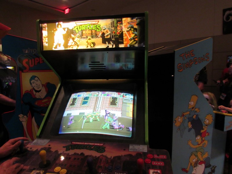 But then when we saw that Teenage Mutant Ninja Turtles had opened up, we abandoned our game in the middle and rushed over to play. Ah yes, I fondly remember the days of playing that game during birthday parties at Peter Piper Pizza. I have no idea how many quarters I lost to that game throughout the years… Josh played Leonardo and I played Donatello. Another guy came up and played Raphael. We had a great time taking down Bebop and Rocksteady, skating around on our skateboards, and saving April O’Neil and Splinter. As much as I wanted to stay and beat the game, thereby accomplishing a childhood dream, time flew by quickly, and we soon had to head up for our first panel of the day.