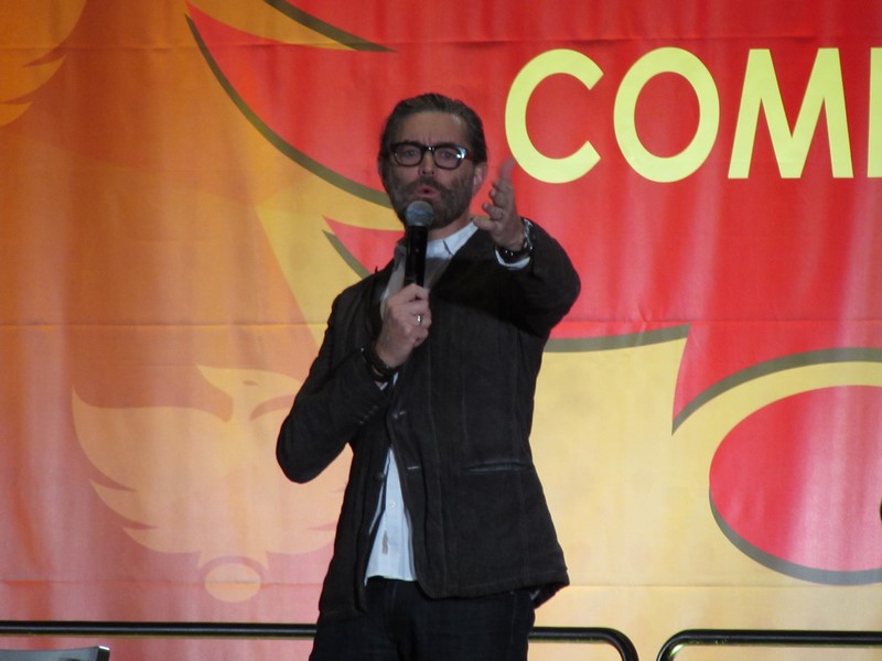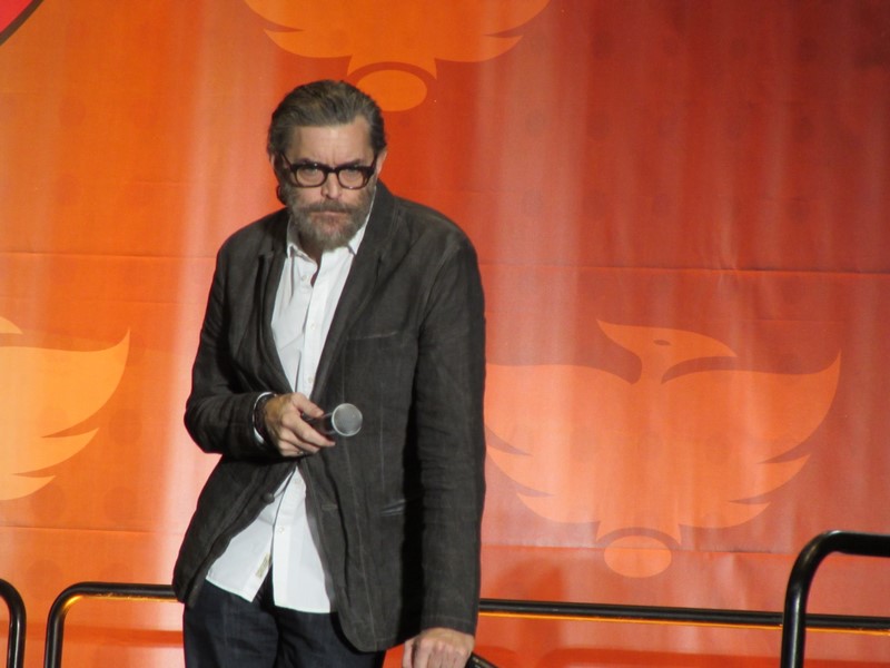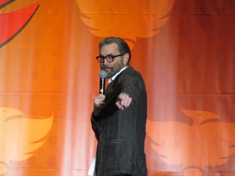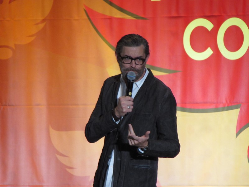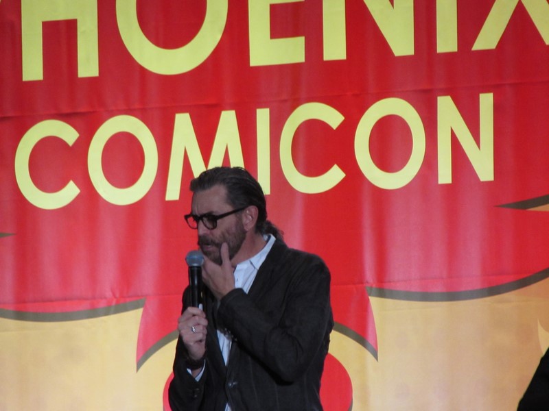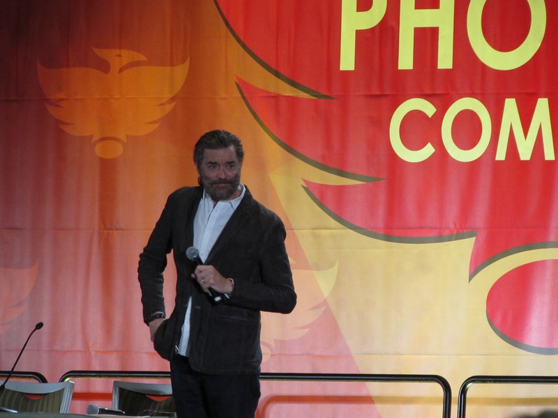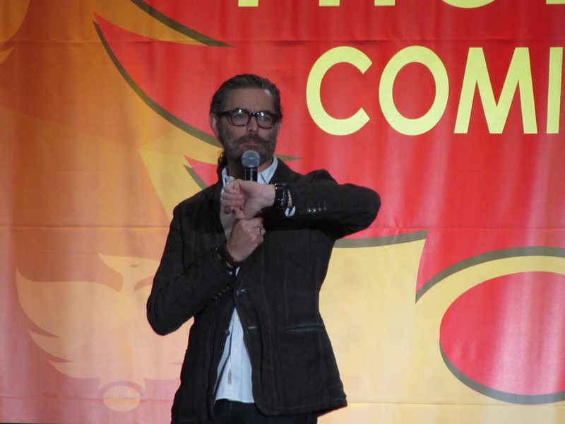 Sunday morning, the last day of Phoenix Comicon 2016, started again for us in West 301BCD, with Timothy Omudnson. He has been on a wide variety of TV shows, and is probably best known for his roles on Psych and most recently Galavant. His panel was at 10:30am on Sunday, but he was running a little late. He provides a good excuse though–There was a rabid mongoose in his hotel room, that he can’t quite remember how got there. Hmm…I think perhaps Timothy might be nursing a hangover? Either way, the crowd was excited to see him, and he seemed energetic and ready to answer a bunch of audience questions!