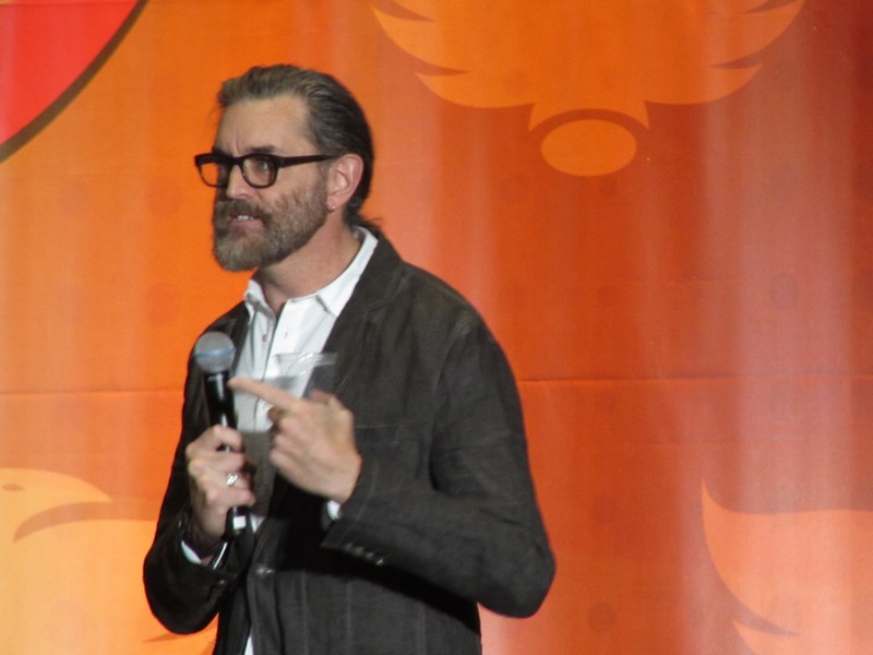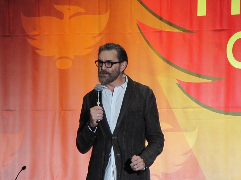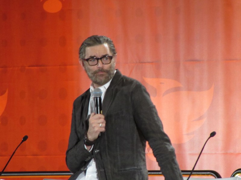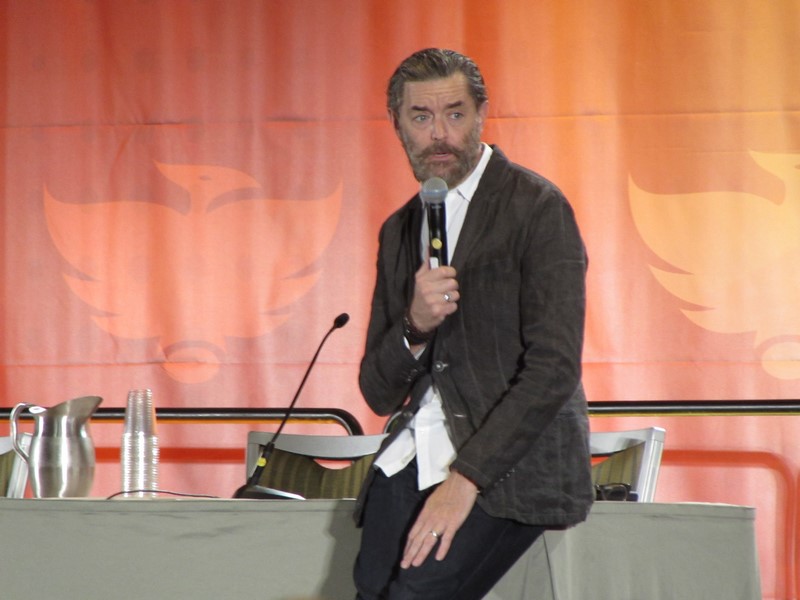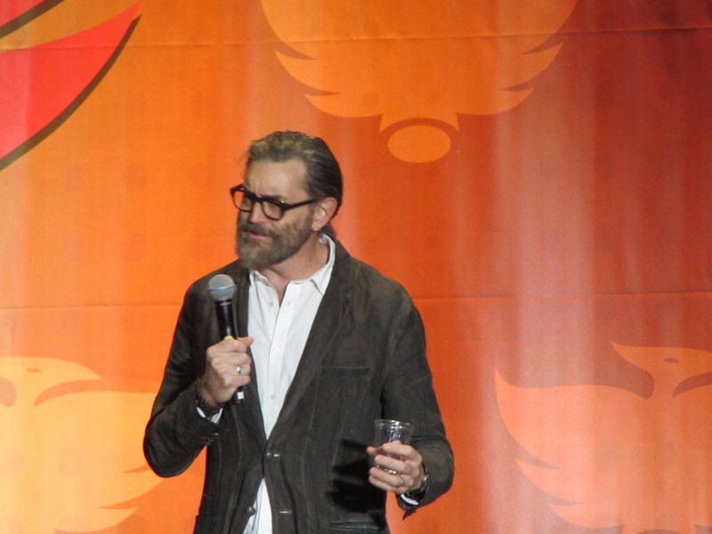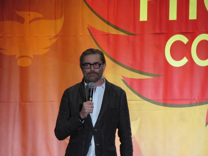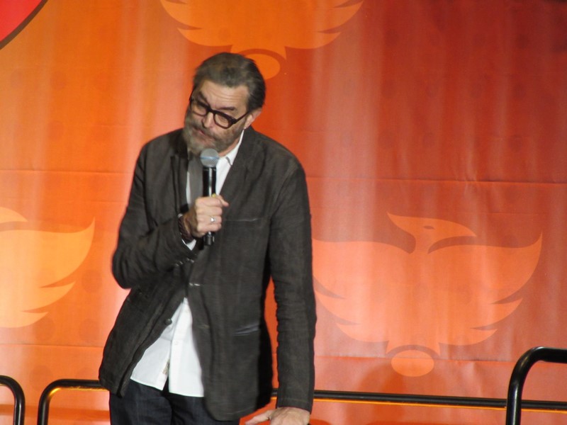 Sunday morning, the last day of Phoenix Comicon 2016, started again for us in West 301BCD, with Timothy Omudnson. He has been on a wide variety of TV shows, and is probably best known for his roles on Psych and most recently Galavant. His panel was at 10:30am on Sunday, but he was running a little late. He provides a good excuse though–There was a rabid mongoose in his hotel room, that he can’t quite remember how got there. Hmm…I think perhaps Timothy might be nursing a hangover? Either way, the crowd was excited to see him, and he seemed energetic and ready to answer a bunch of audience questions!