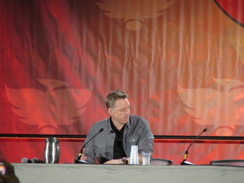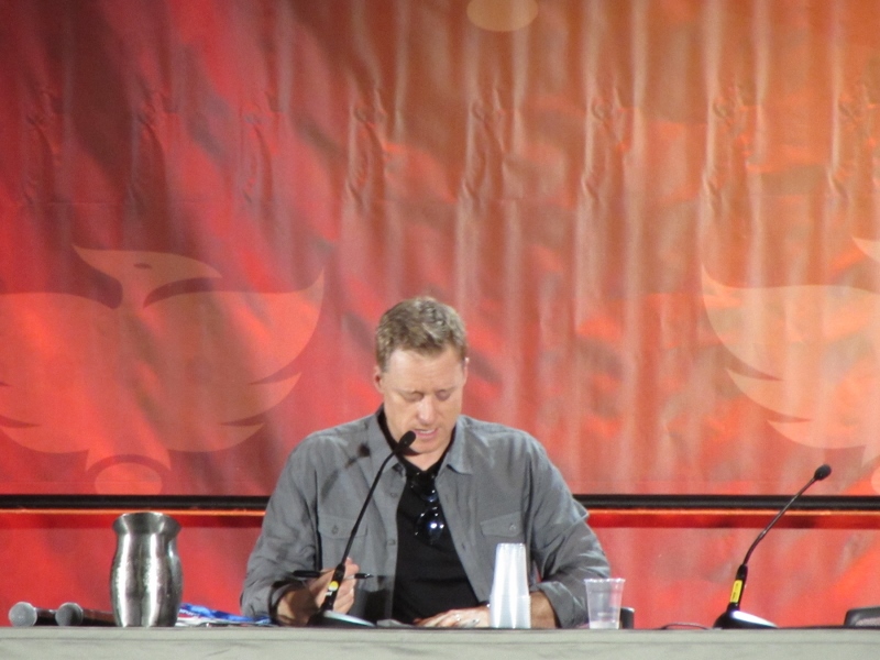Unlike Friday night, when we were up until 4am for the Kids Need to Read Charity Poker Tournament, we actually went to bed at a decent hour and got a good night’s sleep on Saturday night. This was a good thing since we had to get up early on Sunday to pack up our things, check out of the hotel, and make it to Alan Tudyk’s panel, which was scheduled to begin at 10:30am. We made it to the convention center around 10:00am, and found a very short line for bag check, so we were able to get through in just a couple minutes. We then found our way up to West 301BCD for Alan Tudyk’s panel, the room’s first panel of the day.