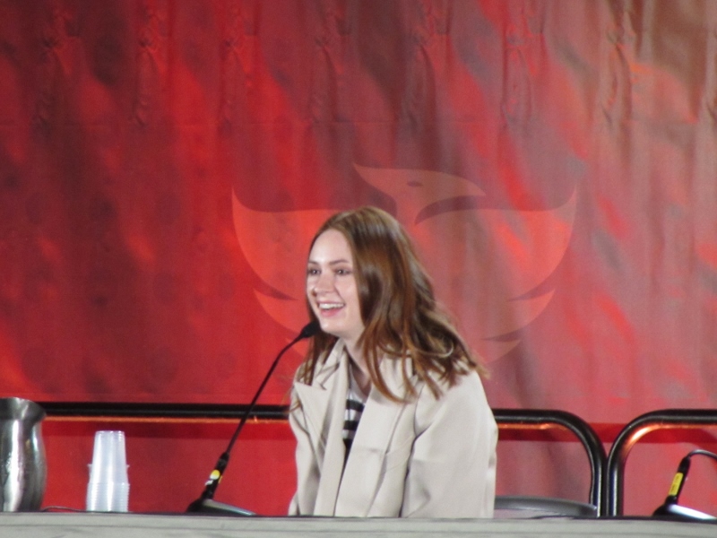 Karen got a whole spectrum of other questions too. For example, Karen was asked when she started acting, which was 18, and she thinks that is a good age to start. She said she started with amateur theater, and loves disappearing into other characters. She was also asked about filming a few different movies and shows she has been in besides the big two people know her for. She was asked about moving to American type movies, such as Oculus, and said that the transition wasn’t bad for her, and she didn’t think it was a drastic change. She also said that she really enjoys American horror movies–and for filming, prefers the American craft service, because of how much more food Americans give during filming compared to the BBC.
