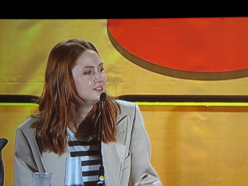 Karen was asked about shifting to an American accent, and she said she took dialect lessons, but also mentioned how she used to play Barbies as a child with an American accent. She also said that Gunn’s advice to talk like Marilyn Monroe for Nebula was the best advice she might have gotten as an actress. We then got to see her do a Britney Spears impression, singing a Frank Sinatra song, That’s Life.