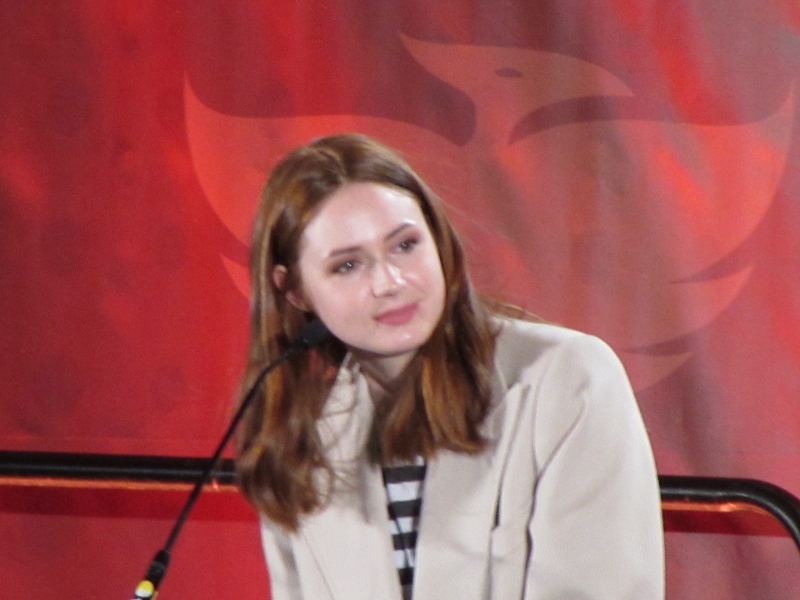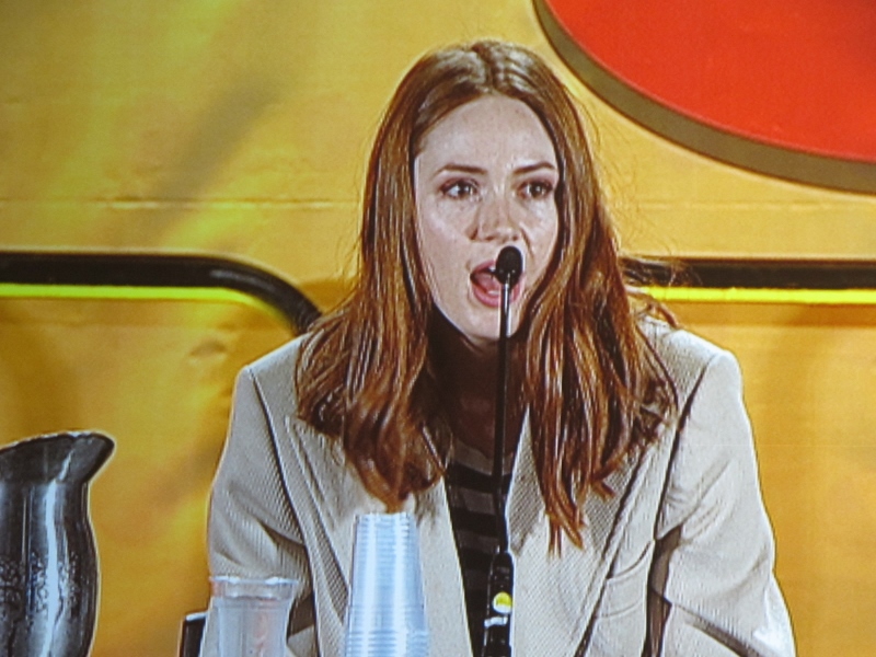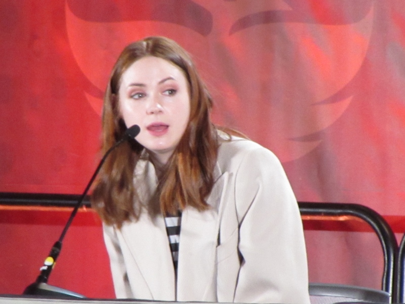 Karen was also asked what advice would Karen not take from a Doctor, and Karen said she really can’t think of anything specific, but did say that Matt Smith is extremely clumsy, and wouldn’t want Amy to take after that. Another questioner asked about funny stories about filming, and Karen said that there were plenty of times where Matt Smith’s clumsiness had him falling over. Speaking of Doctors, Karen was also asked how Amy would be with other iterations of the Doctor, but she wasn’t quite sure. She did say that working with Tennant and especially Capaldi’s versions of the Doctor would be great. Capaldi specifically because it would be two Scottish accents on the show.