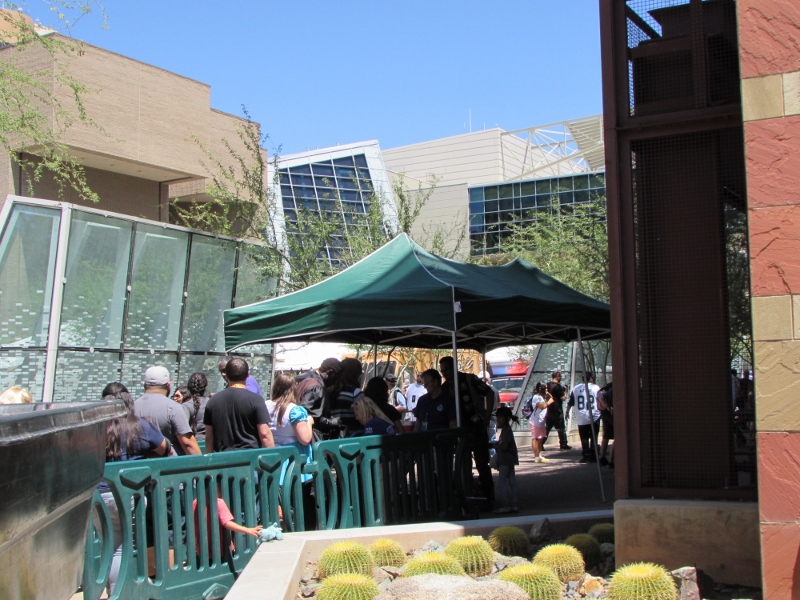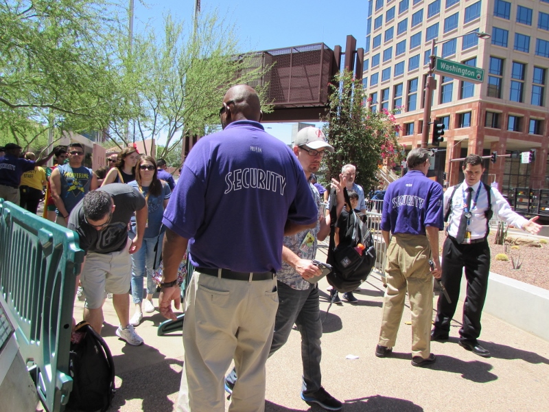 We weren’t sure how bad the lines would be after the line congestion we had heard about the day before, but it seemed that they had worked out the kinks. Even though the end of the line for the 3rd/Washington entrance stretched to the back of the Convention Center, it moved very quickly, taking less than 10 minutes to get through. They had several people checking bags, as well as a line for people with no bags. Additionally, each person entering was wanded with a metal detector.