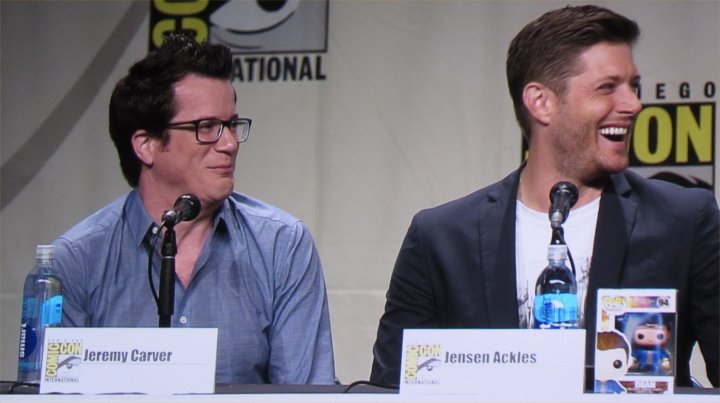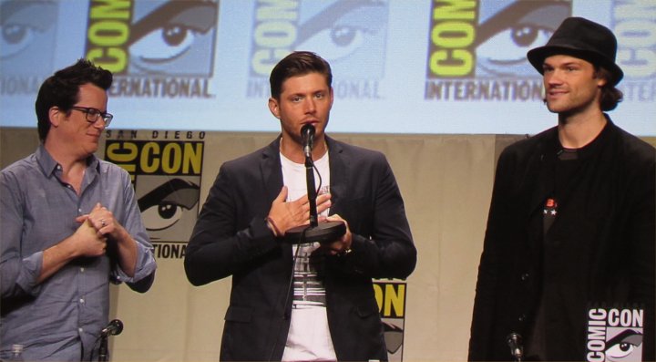 Brian Truitt then asks what it was like making the pilot 10 years ago, and Jared talks about their excitement that they could be picked up for a full season back when the show first started. Jensen and Jared both remark how they are constantly stopped by full grown adults who tell them that they have been watching Supernatural since they were children. It kind of seems to creep them out. But Jared does say that he plans on visiting the Hall H line on Sunday going forward, as he did this year for the first time. Jensen also discusses how they had to navigate through some turbulent waters, and keep their heads down as the network merger went on early in their show’s life.