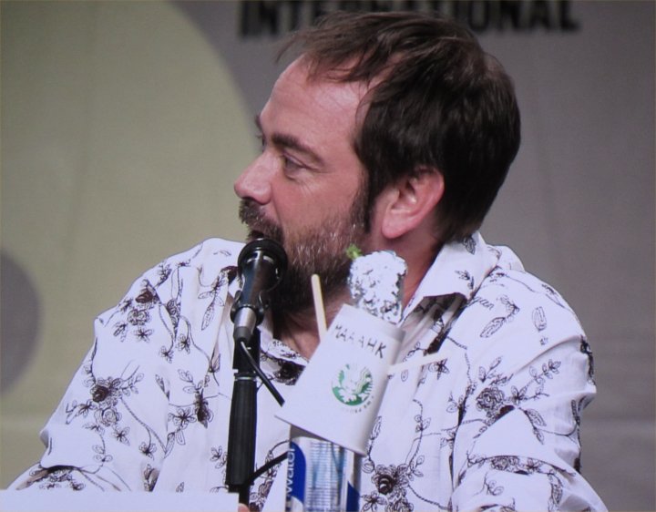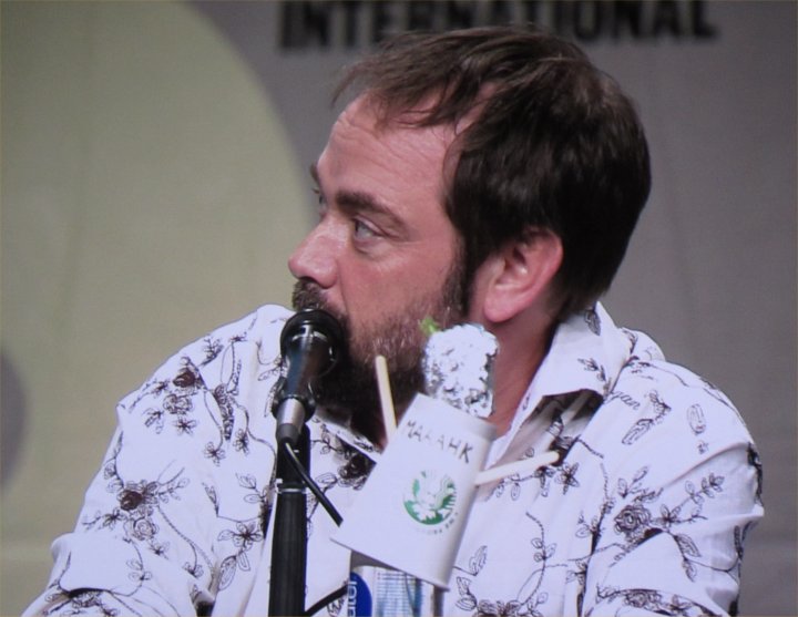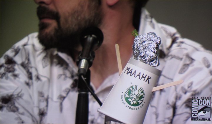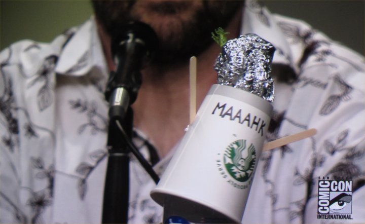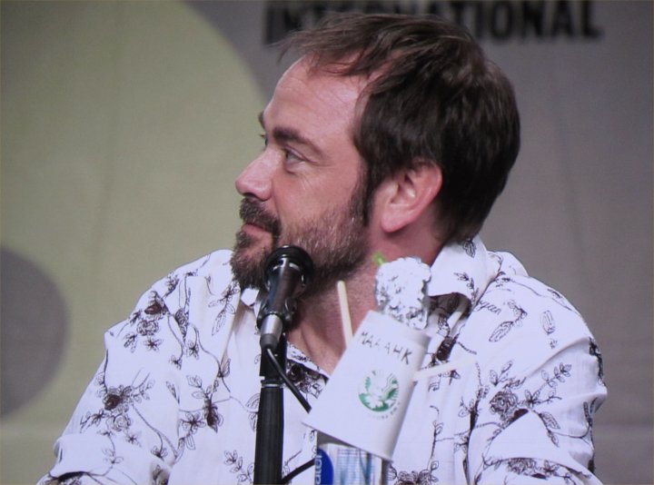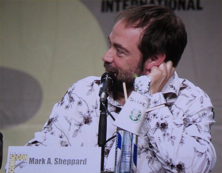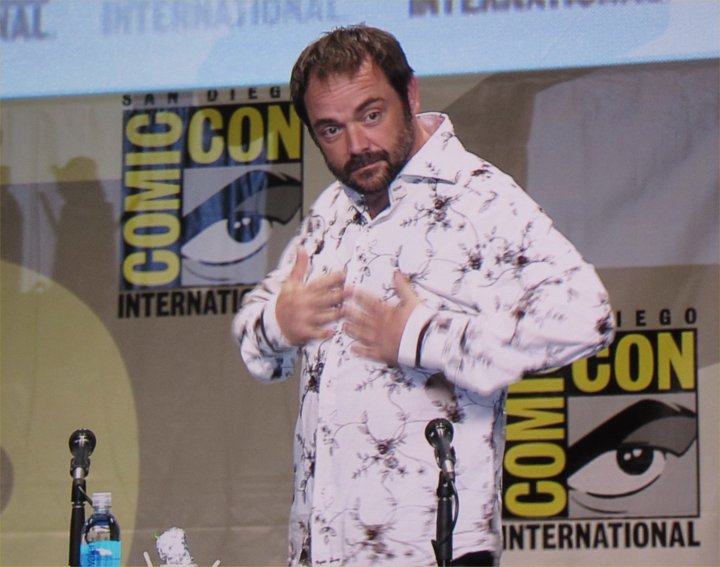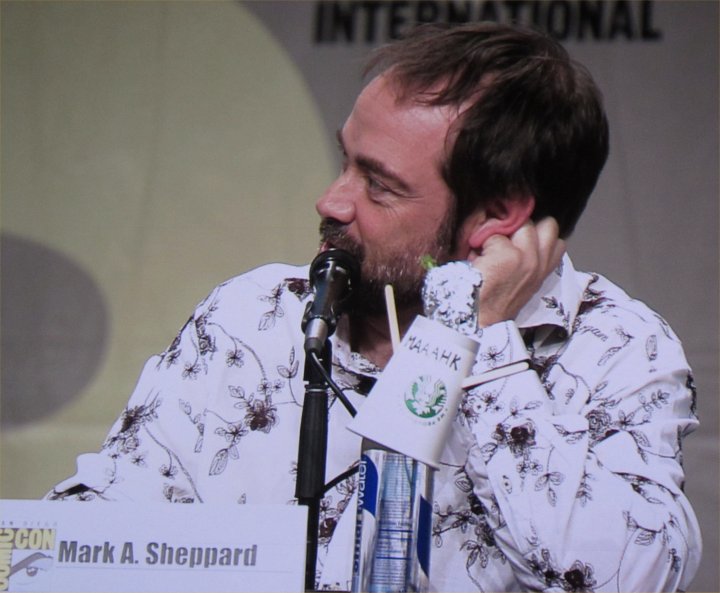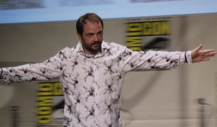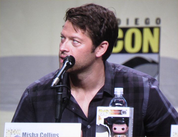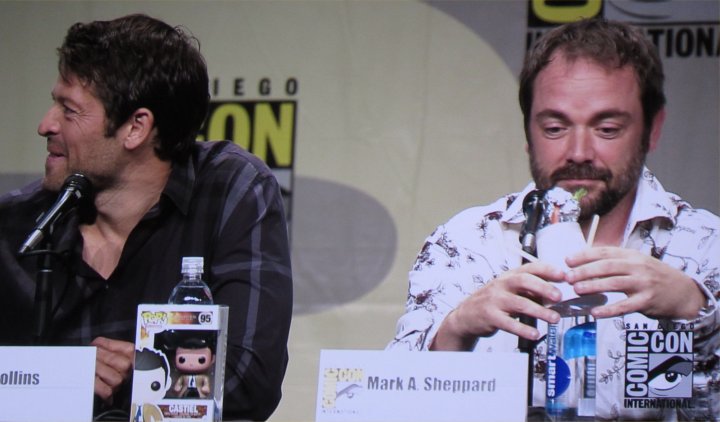 Misha also discusses his need to maintain Castiel’s fading Grace, and how that while his grace fades, Castiel is focused on trying to save Dean. Meanwhile, as Misha Collins talks, Mark Sheppard is playing with his make-shift doll, entertaining Hall H with his antics.