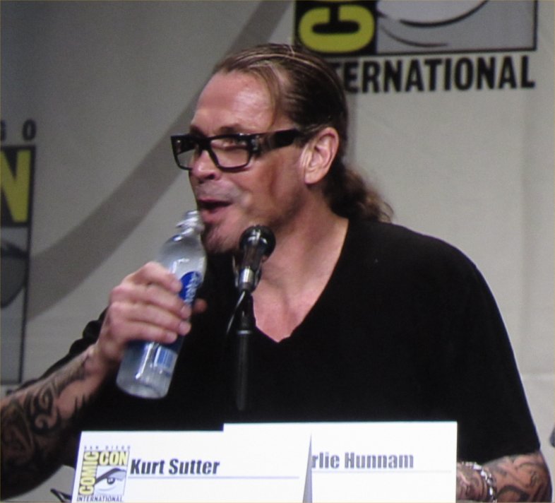 Charlie Hunnam (Jax) was busy with a Vogue photo shoot, so he did not attend Comic-Con this year, but there were plenty of panelists: exectuive producer/creator/showrunner Kurt Sutter and executive producer Paris Barclay, as well as actors Katey Sagal (Gemma), Kim Coates (Tig), Mark Boone Junior (Bobby), Tommy Flanagan (Chibs), Theo Rossi (Juice), Dayton Callie (Wayne Unser), David Labrava (Happy), Niko Nicotera (Ratboy), and Drea de Matteo (Wendy) all were in Hall H. Charlie Hunnam also sent a funny video, featuring him getting a massage and being served by various cast members. Here is a video of the moment on YouTube: