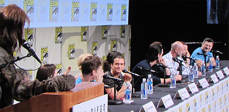 There are some funny moments throughout the panel–Orlando Bloom and Luke Evans discuss their bow and arrow abilities. Elijah Wood gets called out for not reading the Lord of the Rings novels as well. At least he was honest about not ever reading them though! There is also discussion of Elven “poo” sparkling. Also brought up later in the panel is the wolf penis that Stephen Colbert noticed on a battering ram used in the films.