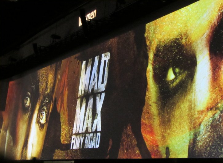 Now finally for what we actually DID see. After Jupiter Ascending, Mad Max: Fury Road was the next panel. For those unfamiliar with Mad Max, it is a film trilogy starring Mel Gibson, in a post-apocalyptic future where technology seems to have faded, and is a film very much about carnage, chaos and cars. George Miller has returned to direct the newest film, some nearly 30 years after the last Mad Max film was released.