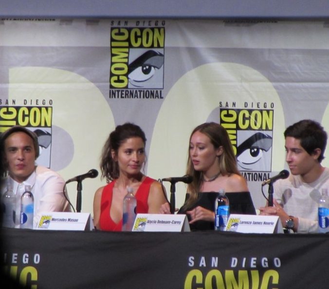 When an audience member asked the panelists how their characters are influencing their evolution as a person, Henrie went off on this heartfelt speech about how it made him more aware of bullying… except that it sounded to everyone (myself included) like he had said “bowling” and this wasn’t clarified until Hardwick brought it up! Debnam-Carey revealed that she now knows how to use a switchblade, while Mason said she enjoyed the progress from such a weak, meek character, and that she loves strong women. She also told the producers that she wants her nickname to be something like “Hammerface,” or another object “face” and then ruin people’s faces with said object!