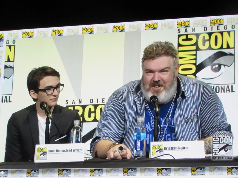 When asked if there was anything that Hodor would like to say to Bran if he were able to say anything other than “Hodor,” Nairn said it would definitely be “No.” However, Nairn said he thought Hodor would be happy with the way he died, and that he enjoyed protecting and looking out for Bran — in the same way that he himself did with Isaac Hempstead Wright the past six years. At that, Wright leaned into Nairn for a hug.