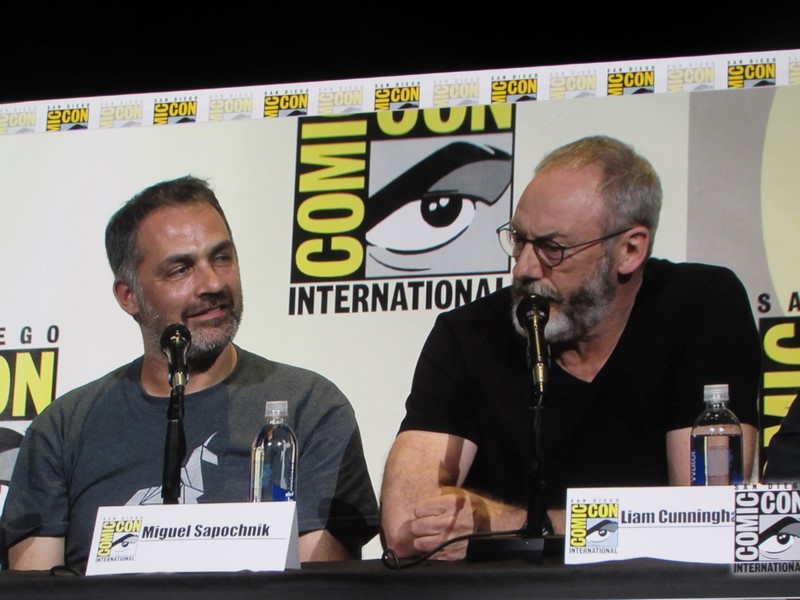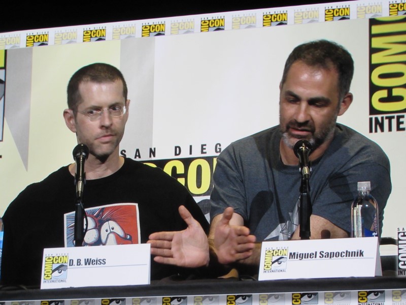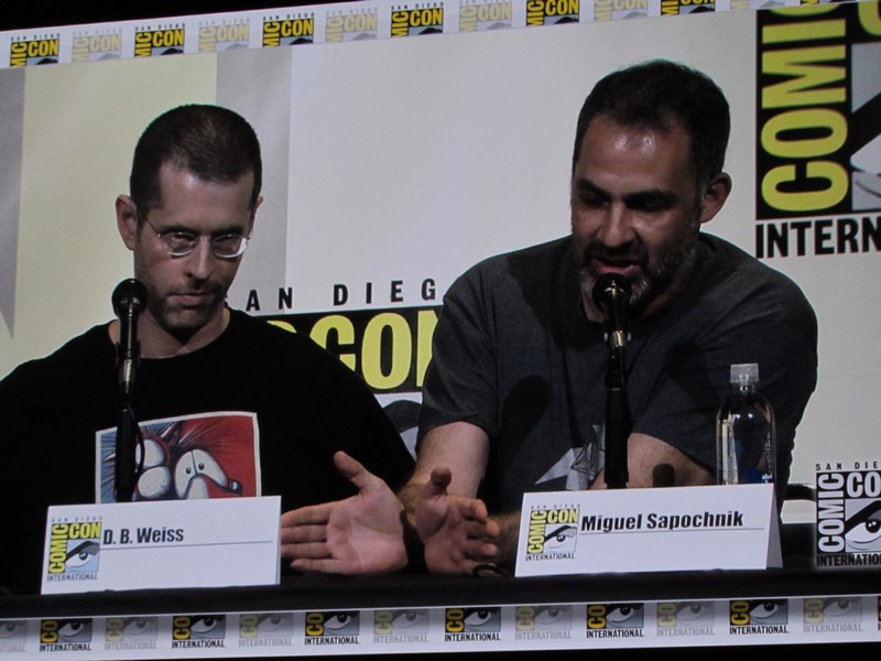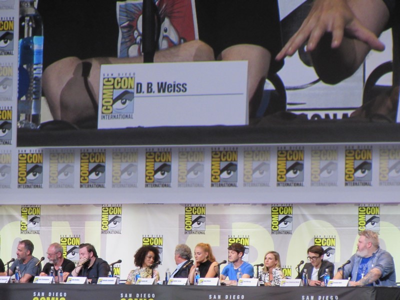 Next, Benioff talked about now being past George R.R. Martin’s books for the first time, and meeting with Martin and getting the Hodor reveal. He said that they’re still living out “the spirit of George’s imagination,” even though they’re beyond the books. Benioff also pointed out that it’s fun how Martin’s books with be different in some respects, yet the same in others.