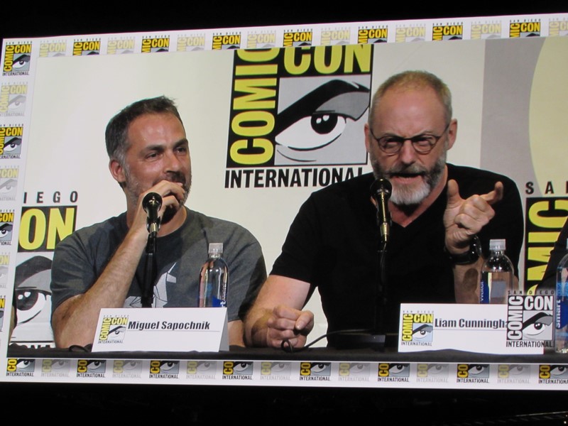 Liam Cunningham has not read the books, so he was not aware of the death of Shireen until he read the script. Cunningham praised the “easy relationship” he had with the actress, and complained that the writers keep taking the people he likes working with away from him! He shared a story that he took the wooden stag home and gave it to his daughter (who was sitting in the audience), which he had her hold while they were watching the show. So while they’re sitting there watching Shireen get burned on screen, which he was not aware was going to happen at that point, he felt like the worst dad in the world!