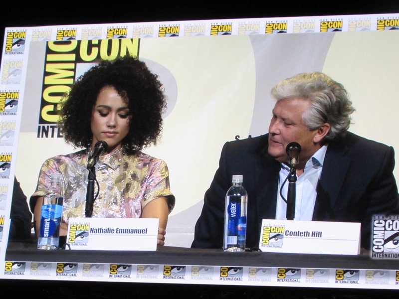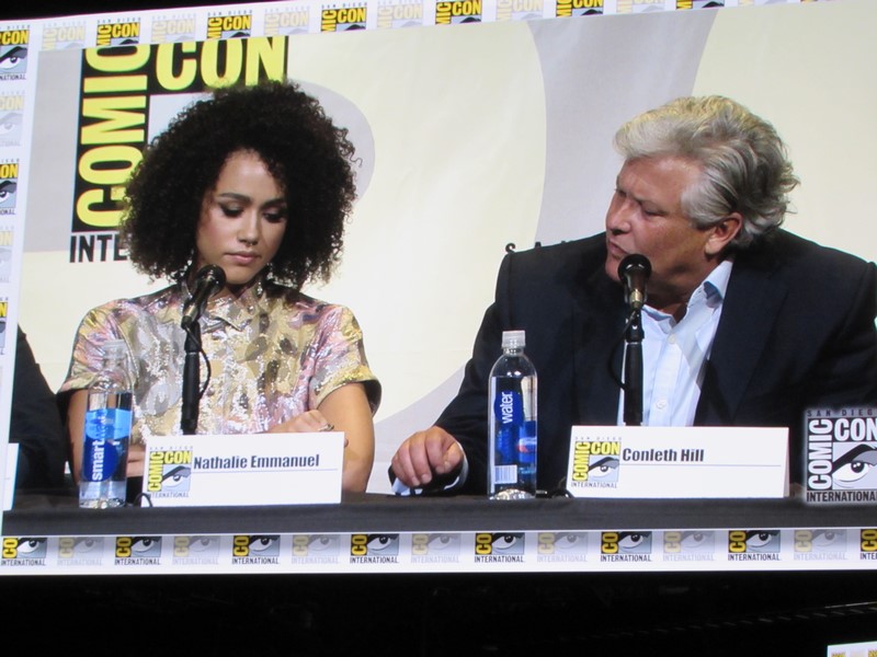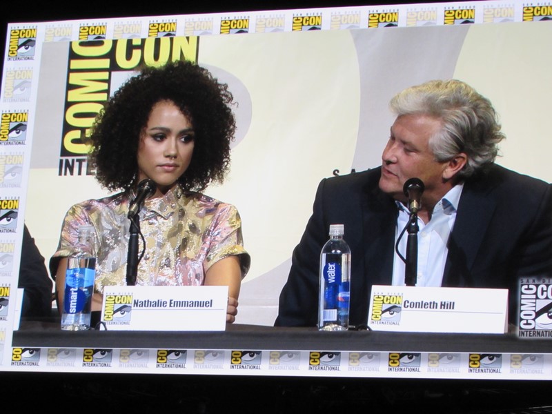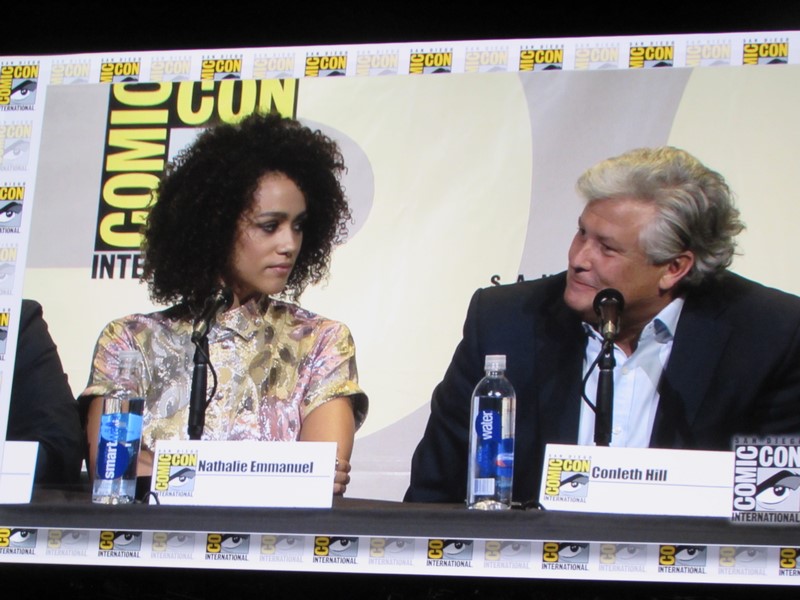 There was a question that came up for the women about how it feels to play strong female characters. Marsay talked about how it’s empowering and awesome. Nathalie Emmanuel said she felt really proud about it, and pointed out that Missandei has had to overcome quite a lot and likes how she is strong, but in a quiet way.