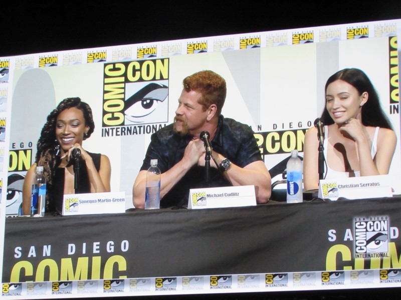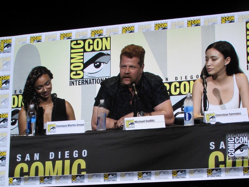 This was also Christian Serrato’s first time at San Diego Comic-Con. She spoke about how coming into the show after it had already been established was nerve wracking, especially after she had heard so many great things about the cast and their work ethic. She talked about the last episode of Season 6, describing it as an “incredible bonding experience” and said that she’s excited to be here “for however long I’m here.” Serratos also brought up how exciting it was for her character to exist so that a Latina character would be available for girls to cosplay.