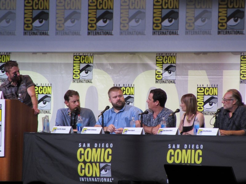 Hardwick then brought out executive producers Scott Gimple, Robert Kirkman, Dave Alpert, Gale Ann Hurd, and Greg Nicotero. Kirkman started off by joking, “Okay, Negan killed…” but then stopped before revealing anything, and promised that the “frustration will be over soon.” Hardwick asked if it will be worth the wait, to which Kirkman replied that he thinks everyone will be blown away, and said “You’re all gonna love it.”