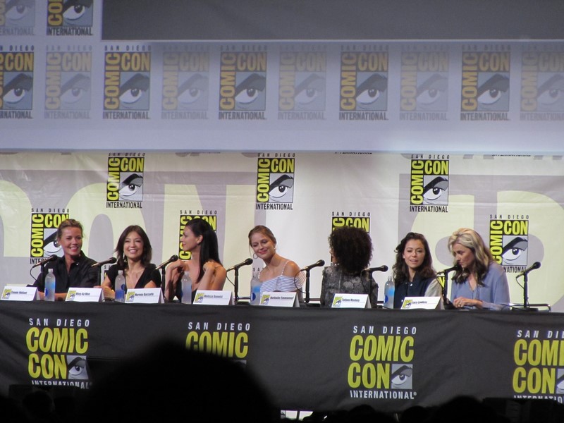 Up next after the Aliens 30th Anniversary panel in Hall H at San Diego Comic-Con 2016 on Saturday, July 23, was Entertainment Weekly’s annual Women Who Kick Ass panel, which started around 4:30pm. This year’s panel featured Connie Nielsen, Ming-Na Wen, Morena Baccarin, Melissa Benoist, Nathalie Emmanuel, Tatiana Maslany, and Lucy Lawless.