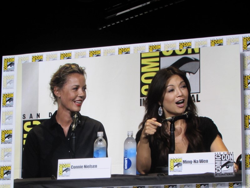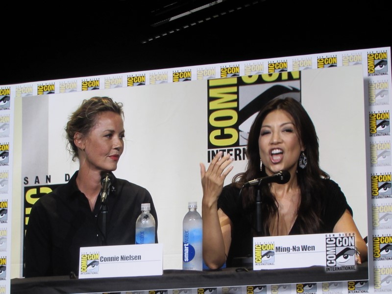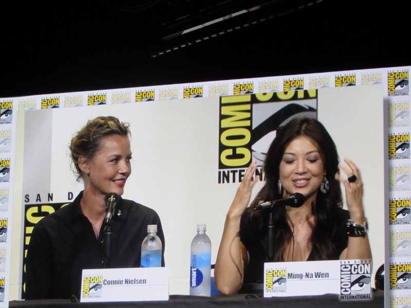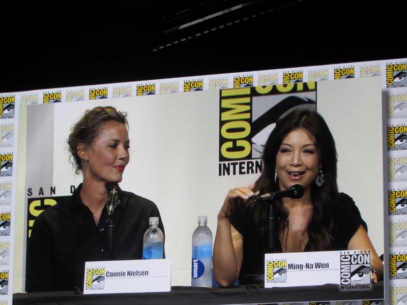 The next question was what was the craziest thing they had been asked to wear during a fight scene. Lawless answered, “a bucket of snot.” Nielsen spoke about how hard it was to move around in full armor, and yet look athletic. Ming-Na Wen talked about how hard it is fighting while wearing high heels, so she loved fighting in her lingerie because she was bare-footed!