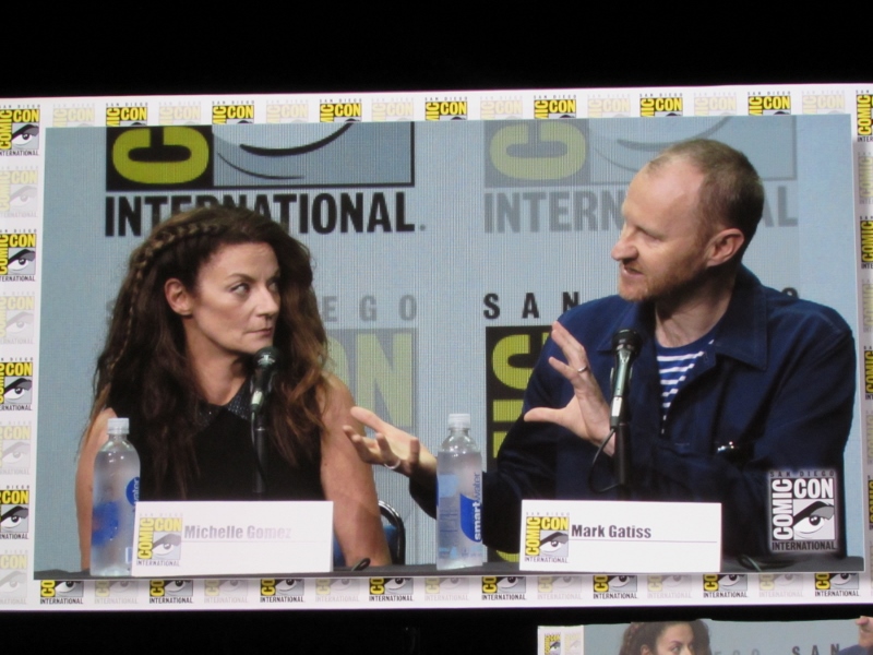 Another audience question was from a girl who had met Michelle Gomez previously, at which time Michelle had asked her to write a Missy spin-off — which she did. So she wanted to know if there was any chance of such a show being made. Michelle exclaimed, “Oh thank God, I’m going to work again!” and told her to see Mark and Steven at the end.
