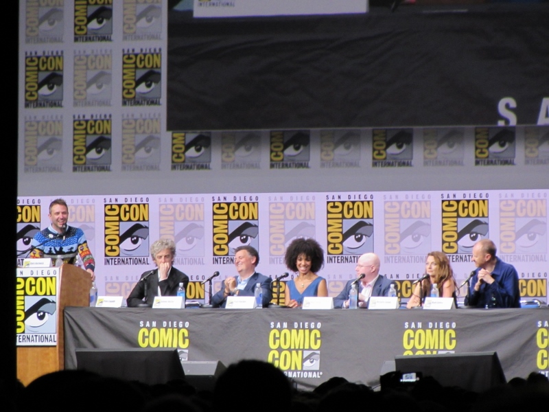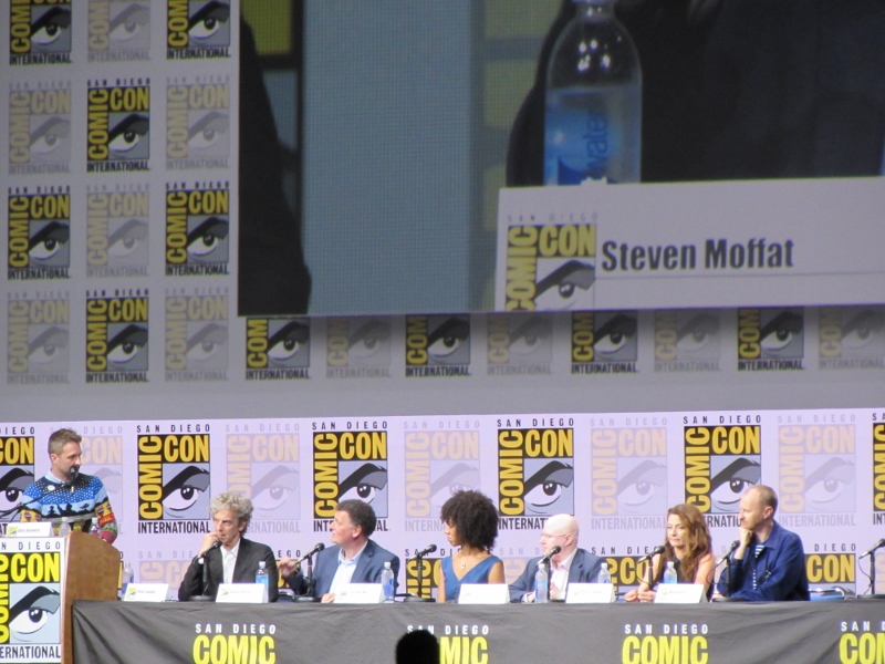 After watching the teaser, Chris Hardwick introduced the panelists and brought them out on stage: showrunner Steven Moffat, writer/actor Mark Gatiss, who will be appearing in the Christmas special, and cast members Pearl Mackie (Bill), Matt Lucas (Nardole), Michelle Gomez (Missy), and the Twelfth Doctor himself, Peter Capaldi.