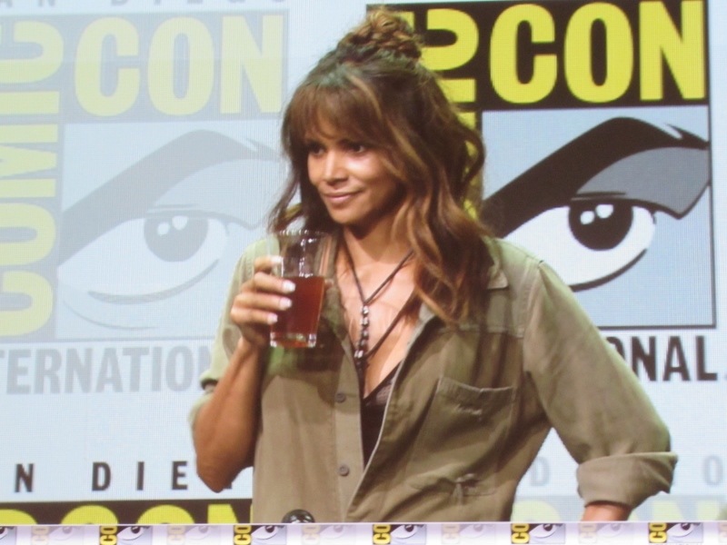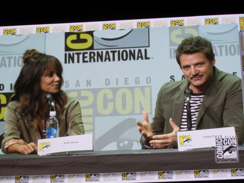 The final question for the panel asked what makes a good Kingsman or Statesman. Taron answered impeccable manners, and the ability to right hook, and having some nice clothes. Firth added a good umbrella. Channing said that drinking and fighting is what a Statesman needs. A Statesman needs to be able to put down a pint of Bourbon, according to Halle Berry. Pedro said cracking whips, and Bridges finished up saying a good pair of boots.