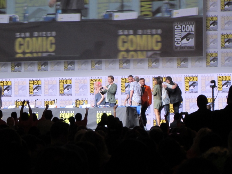 The loading into Hall H took a bit of time though, and when we got into the Hall, it had only been about halfway filled at that point. We went to our usual spot, towards the far right side of the seating, which puts us pretty close to the restrooms, and a good view of some of the screens.