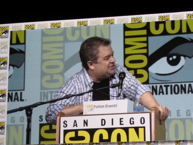 Finn Wolfhard and Patton Oswald seemed to have it in for each other the entire panel, starting off with Patton making things awkward, saying that Wolfhard’s name is a good porn name. Patton moved on though, asking the panel about playing their characters. Patton Oswald seemed to struggle with his “A.I.” questions, as he described them, as most of the questions he had to ask seemed to lead to potential spoilers. David Harbour talked about his character, Jim Hopper, who seems to have changed since the beginning of season one, and now is leaving waffles for Eleven. But Patton Oswald complimented Millie Brown’s ability to act without using many words. Millie said it came down to using facial expressions.