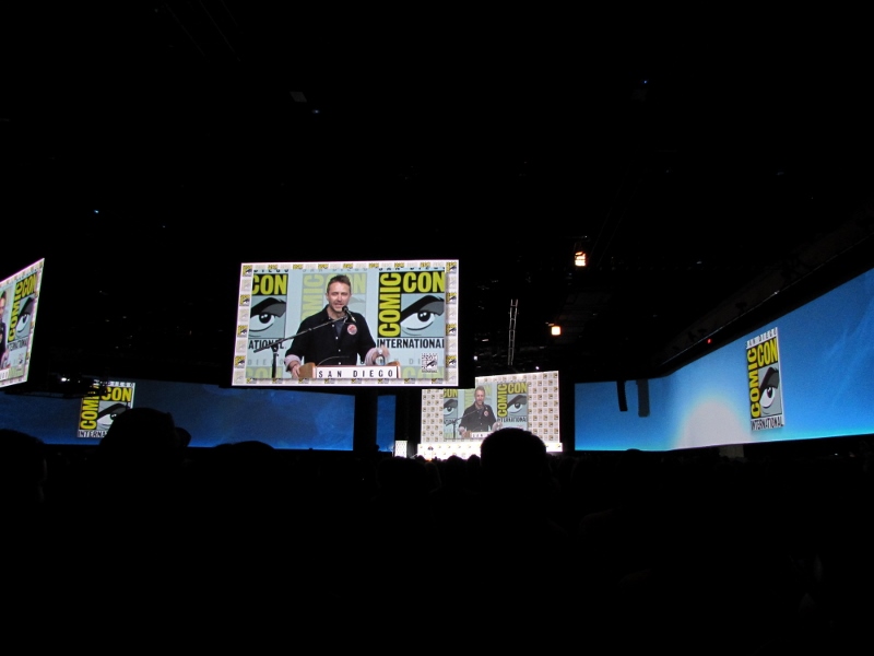 Now that I have thoroughly ran this wristband situation into the ground, let us talk about more happy stuff! The actual panels of Hall H! Warner Bros. was the first panel of the day on Saturday, July 22, and it started off with a bang. Warner Bros did their typical intro video, which features all of their movie franchises — Lord of the Rings, Harry Potter, DC properties, among various other things. Of course, they opened up the side panel screens, which is always very exciting!