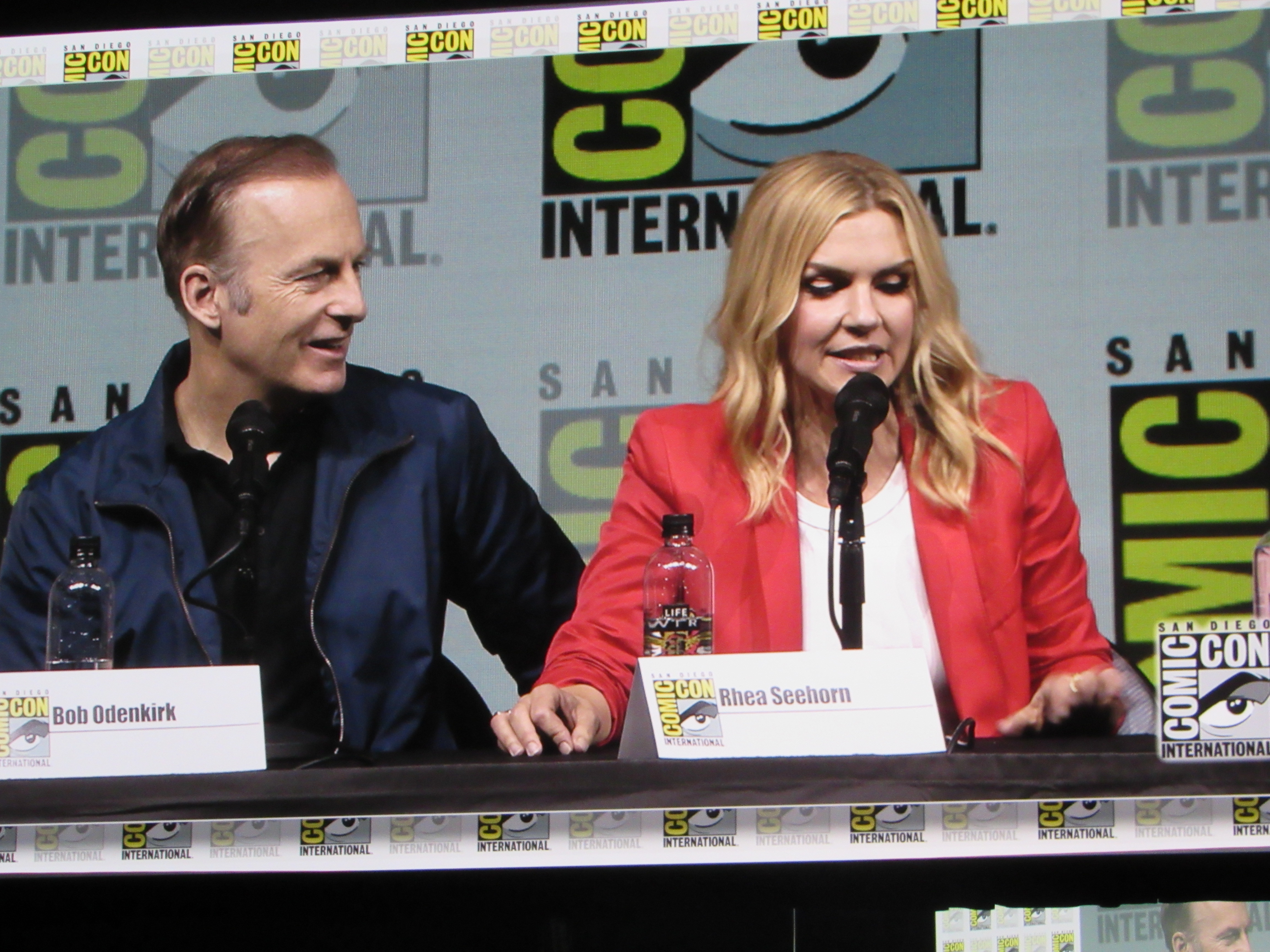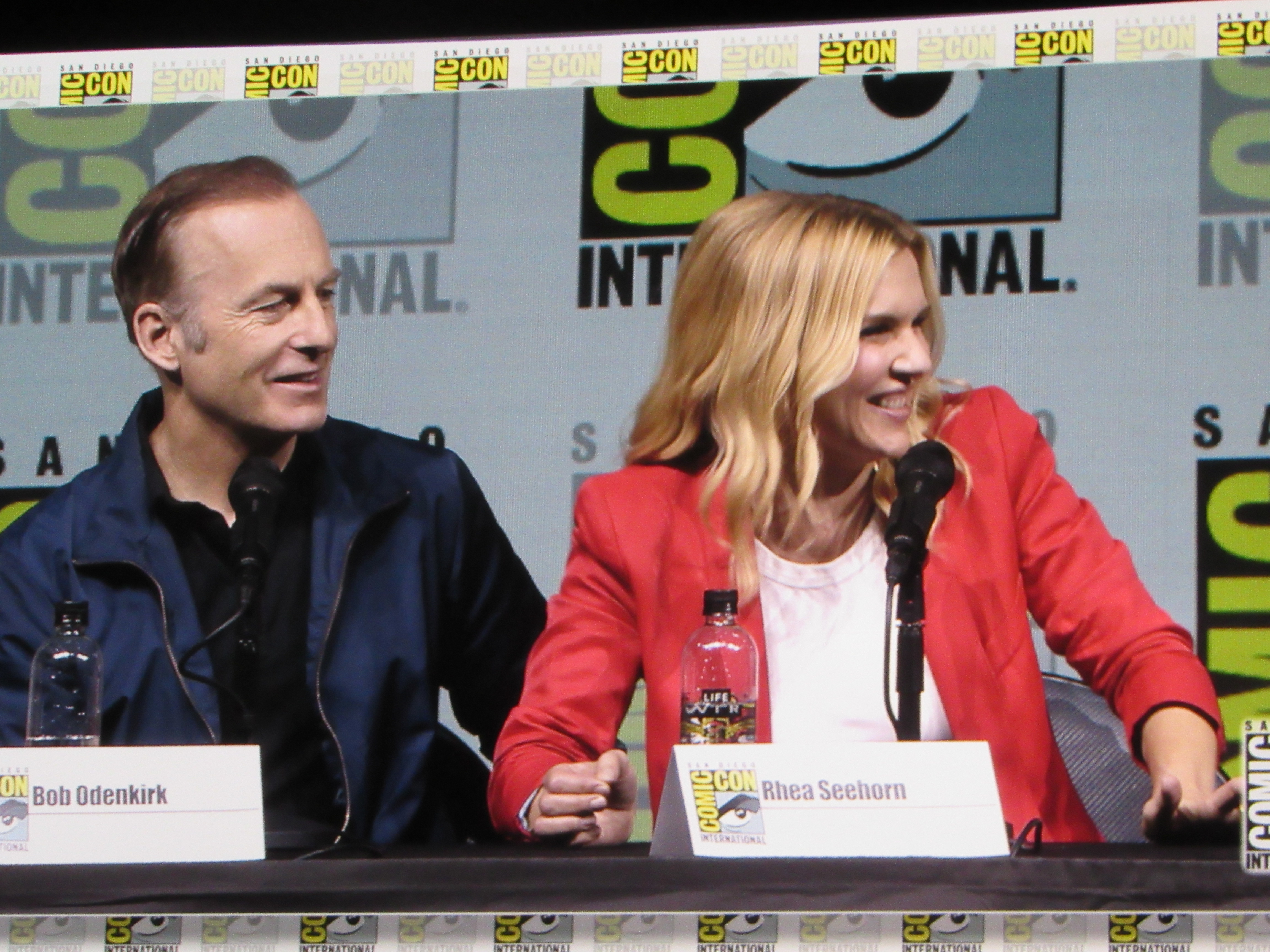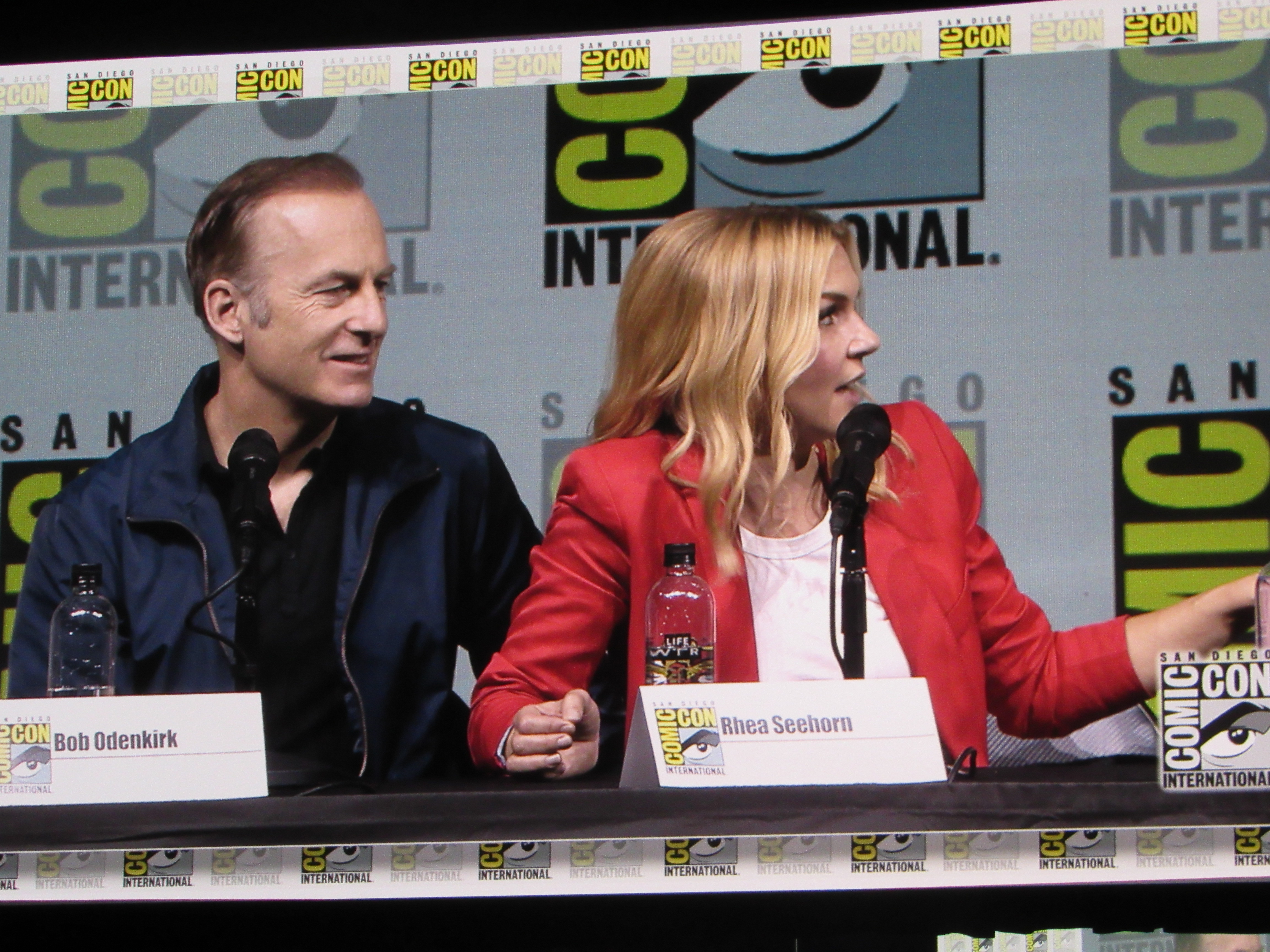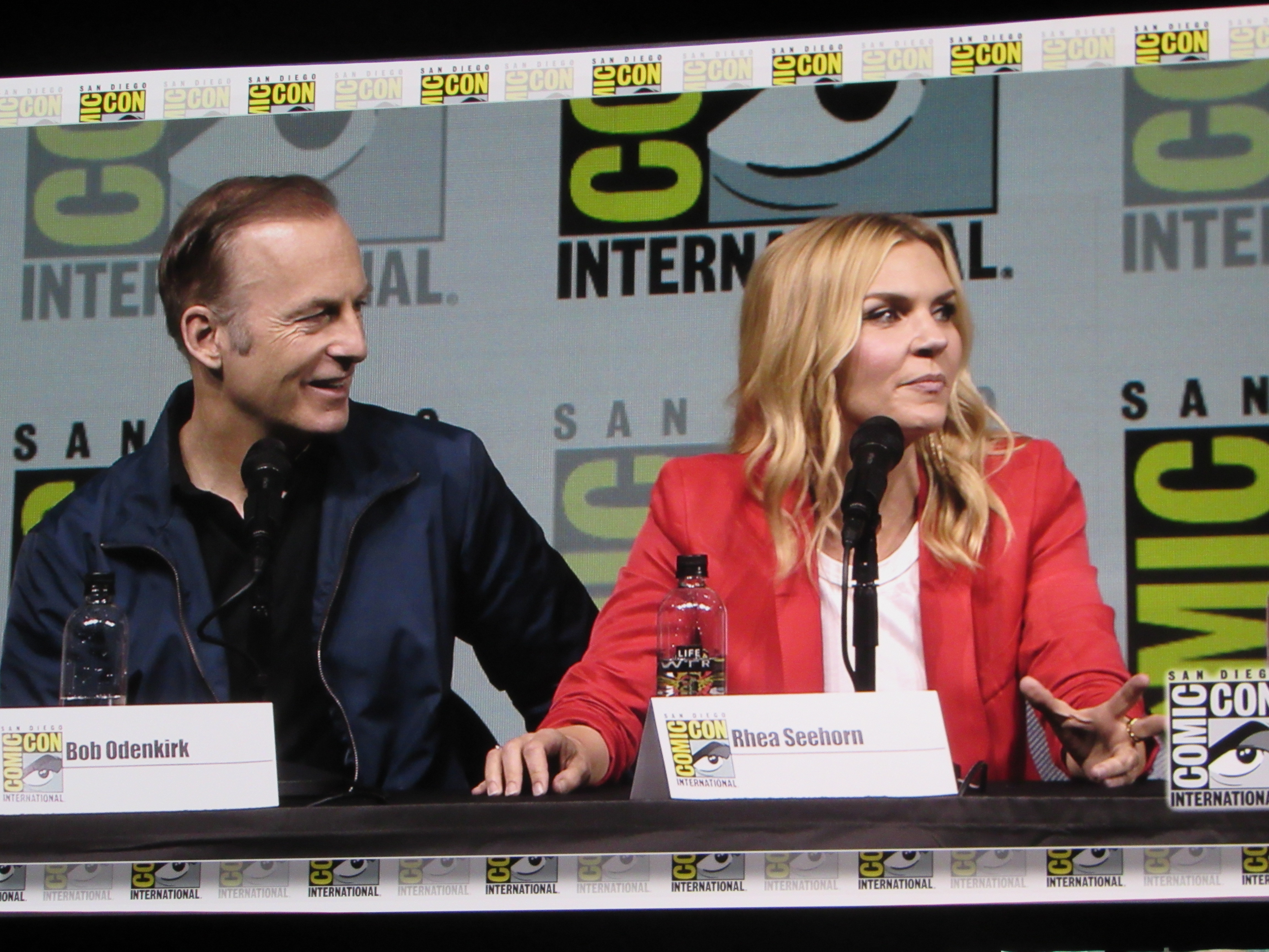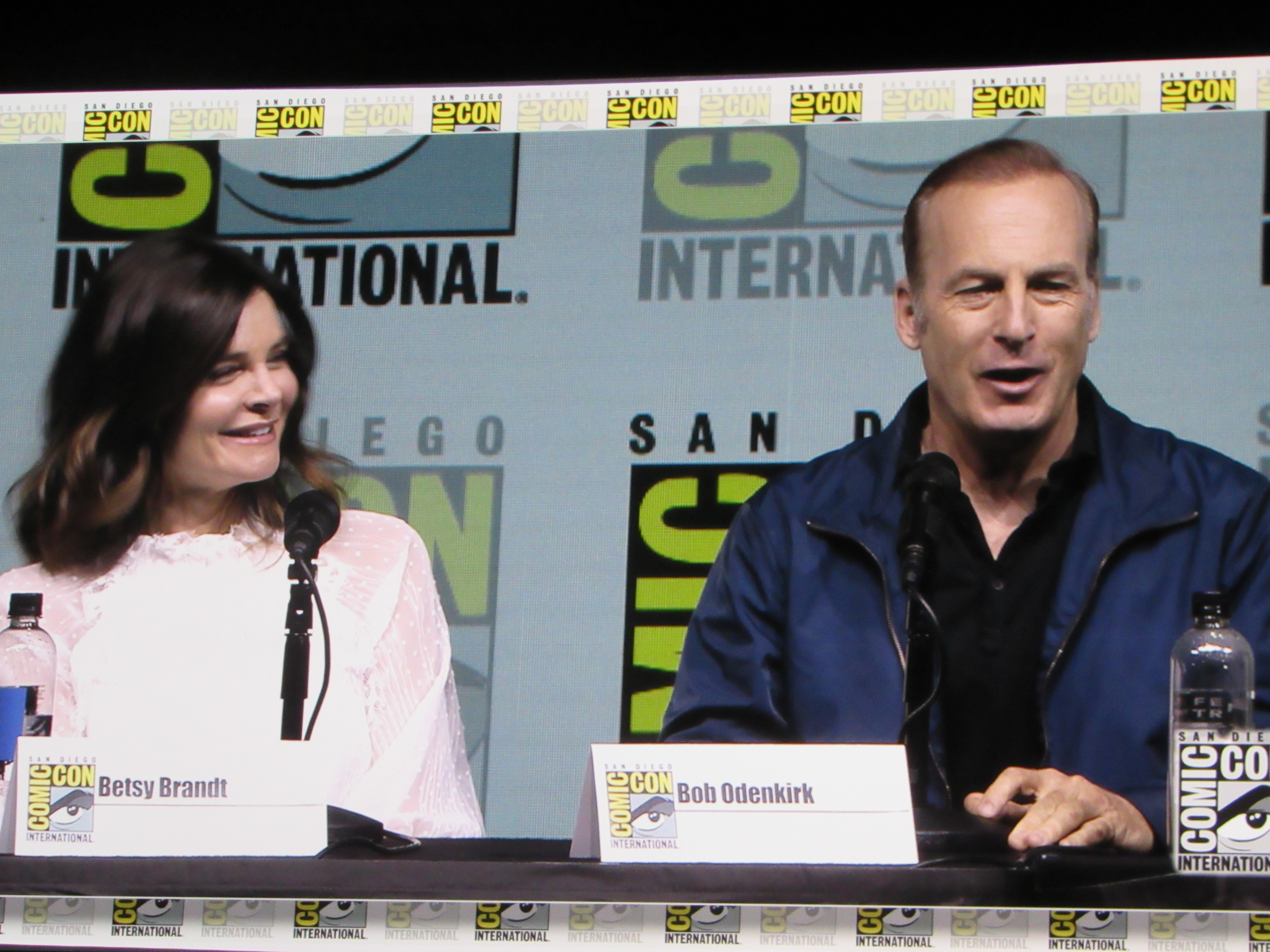 Panelists included creator Vince Gilligan, co-creator and executive producer Peter Gould, and cast members Bob Odenkirk (Jimmy), Rhea Seehorn (Kim), Patrick Fabian (Hamlin), Michael Mando (Nacho), and Giancarlo Esposito (Gus). Jonathan Banks (Mike) was unable to make it to the panel due to knee surgery, but he was represented in bobblehead form.