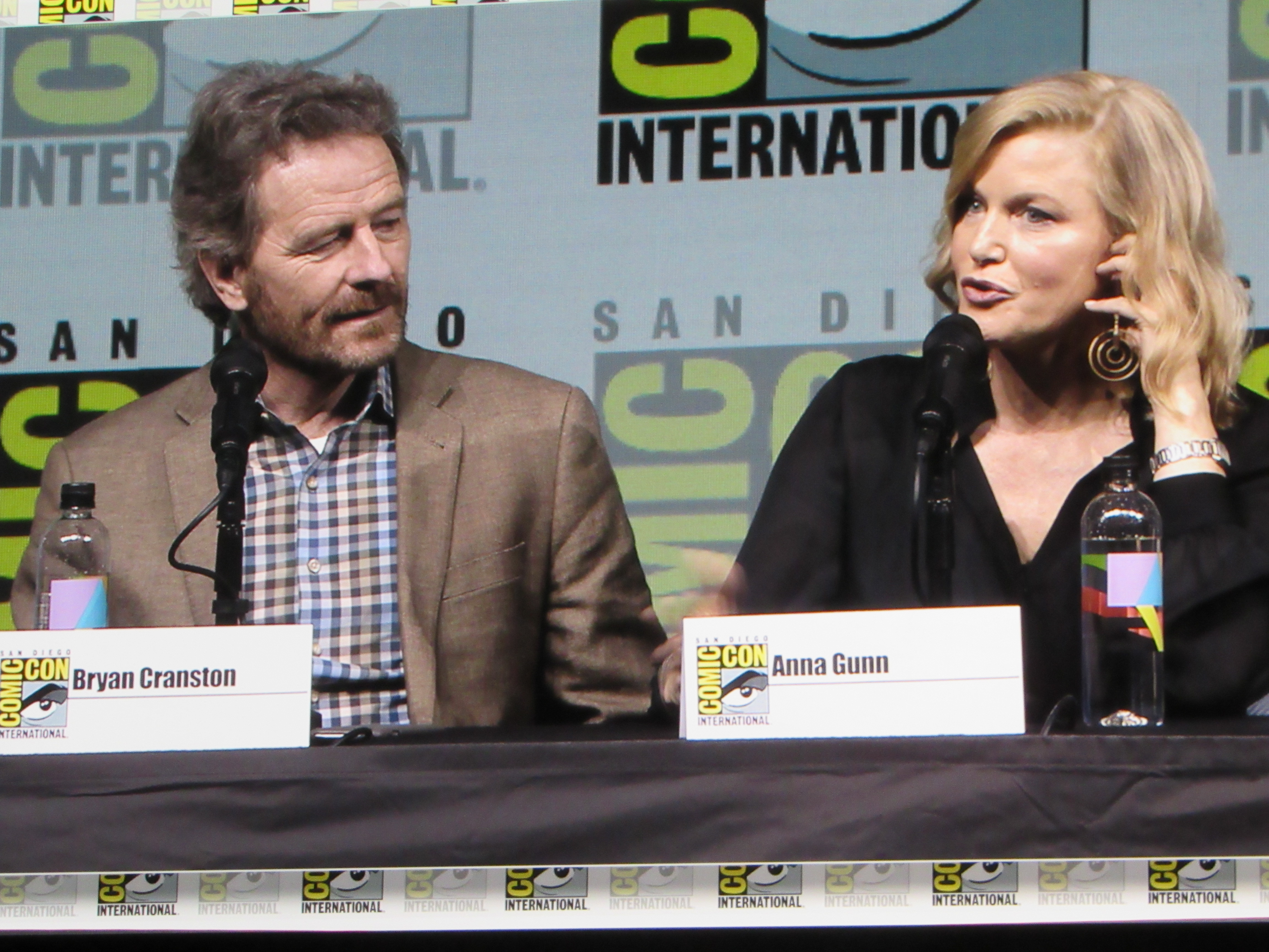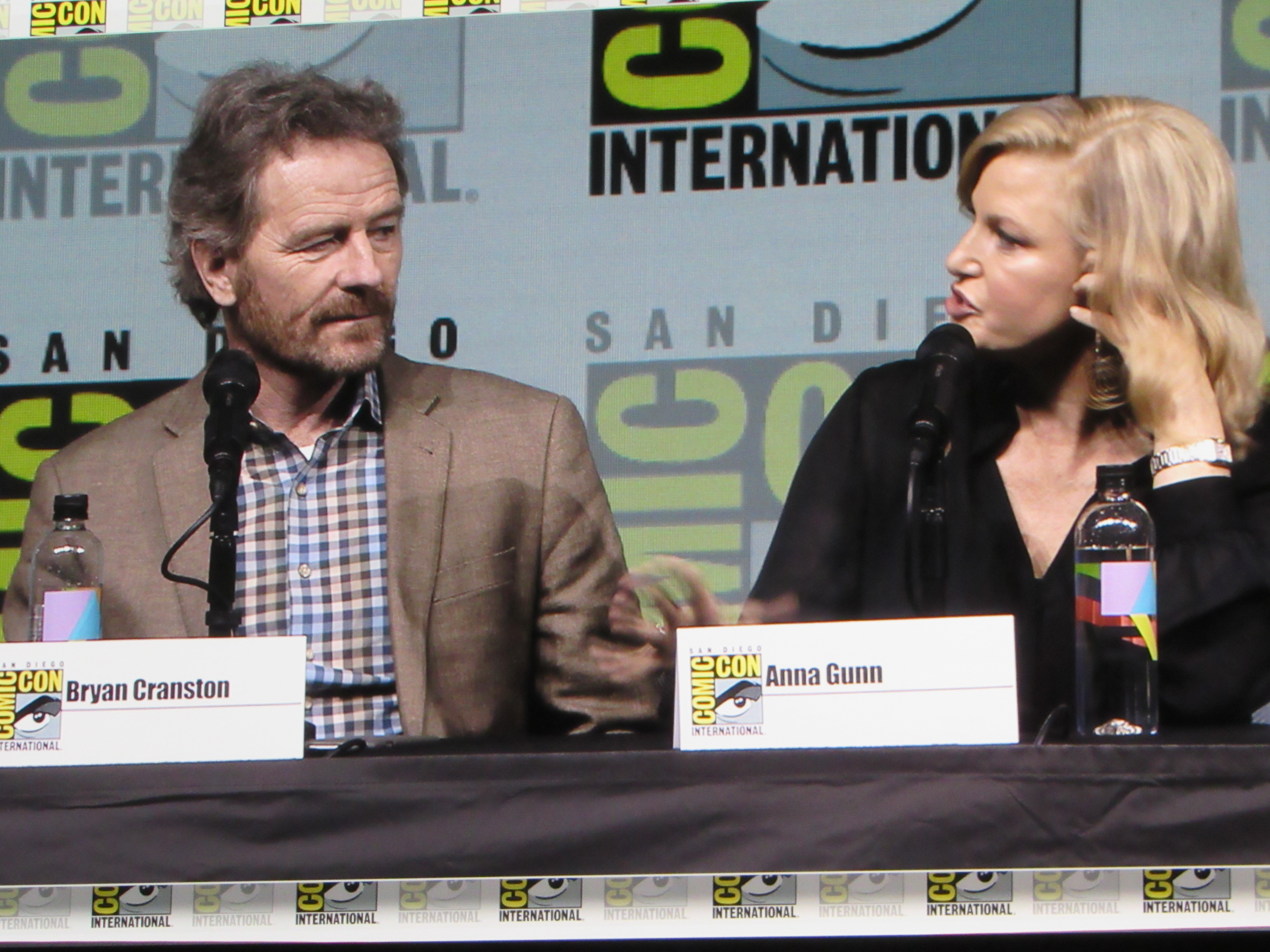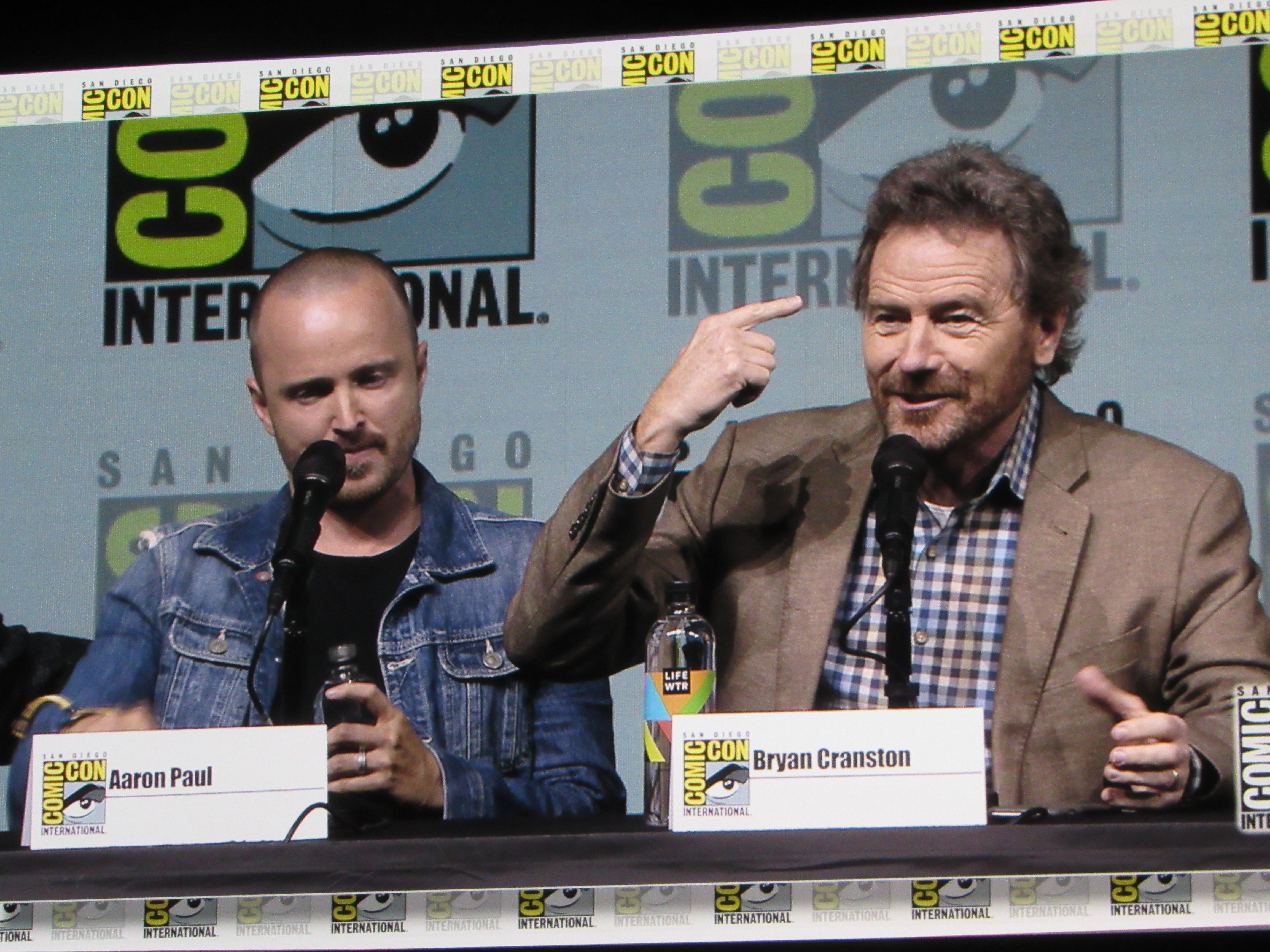 Burr pointed out how the show kept growing and growing exponentially every year, and asked what it was like to keep gaining more and more fans like that. Cranston commented how they started out as a little show, but he knew that they were starting to get big when people started stealing the directional signs indicating where cast and crew should park! This started happening during the second or third season. Then they changed the signs from reading “Breaking Bad” to “Br Ba” but those got stolen too. Paul and Cranston also spoke about how Netflix was instrumental in making the show more popular, as the first three seasons were put on Netflix as the fourth season began shooting.