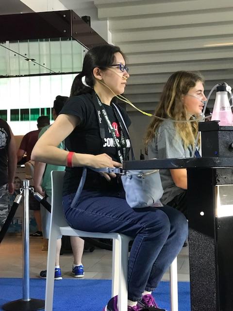 The lounge area had places to sit, where you could charge your phone or just relax. There was also an oxygen bar, the kind I remember seeing about 10-15 years ago in theme parks and malls, but never bothered trying. Josh opted to just relax in one of the lounge chairs, while I tried out the oxygen bar.