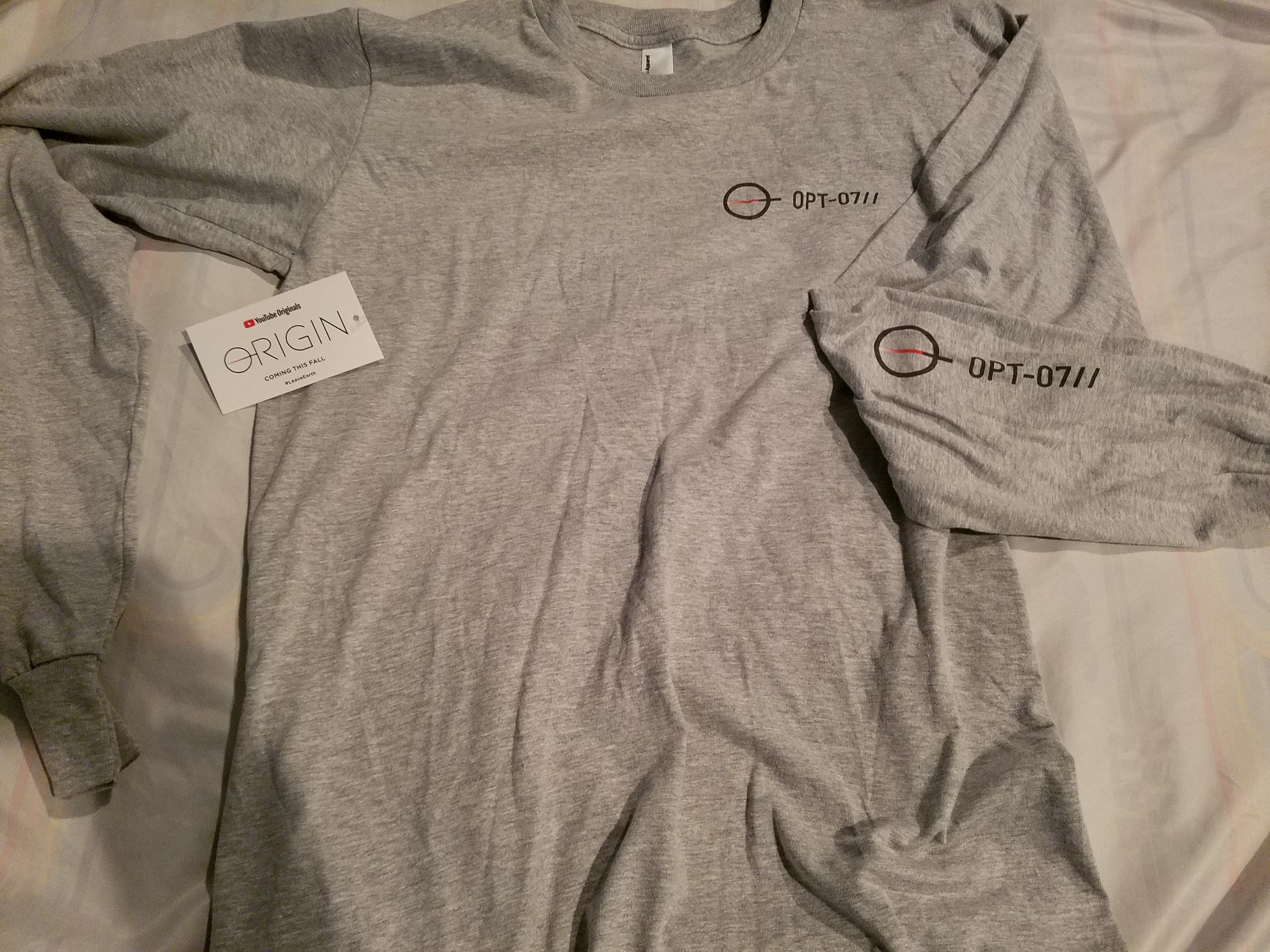 Our Origin tickets got us each a long-sleeved gray T-shirt. Thankfully, we were able to pick what size we wanted, and I was able to get a size Small. Josh’s The Passage ticket got him a paperback copy of The Passage novel.