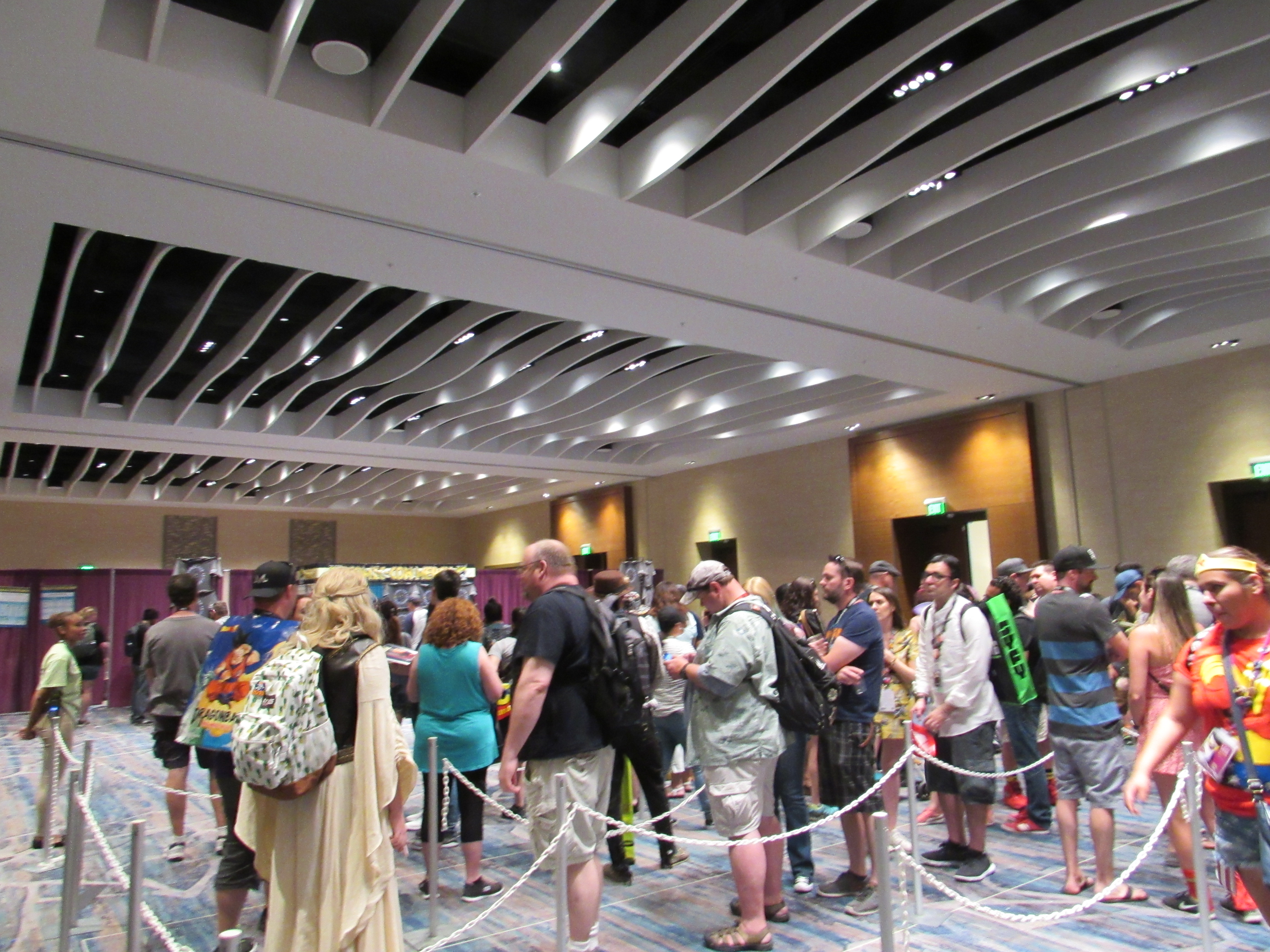Usually I take a photo inside the room just to show the various panels you could have gotten swag from, but this year photos were prohibited inside the room. That makes sense, because some unscrupulous attendees could go in and take a photo of the tickets required for each giveaway, go out and find the corresponding colors/styles at a store somewhere, and come back and get a bunch of swag.