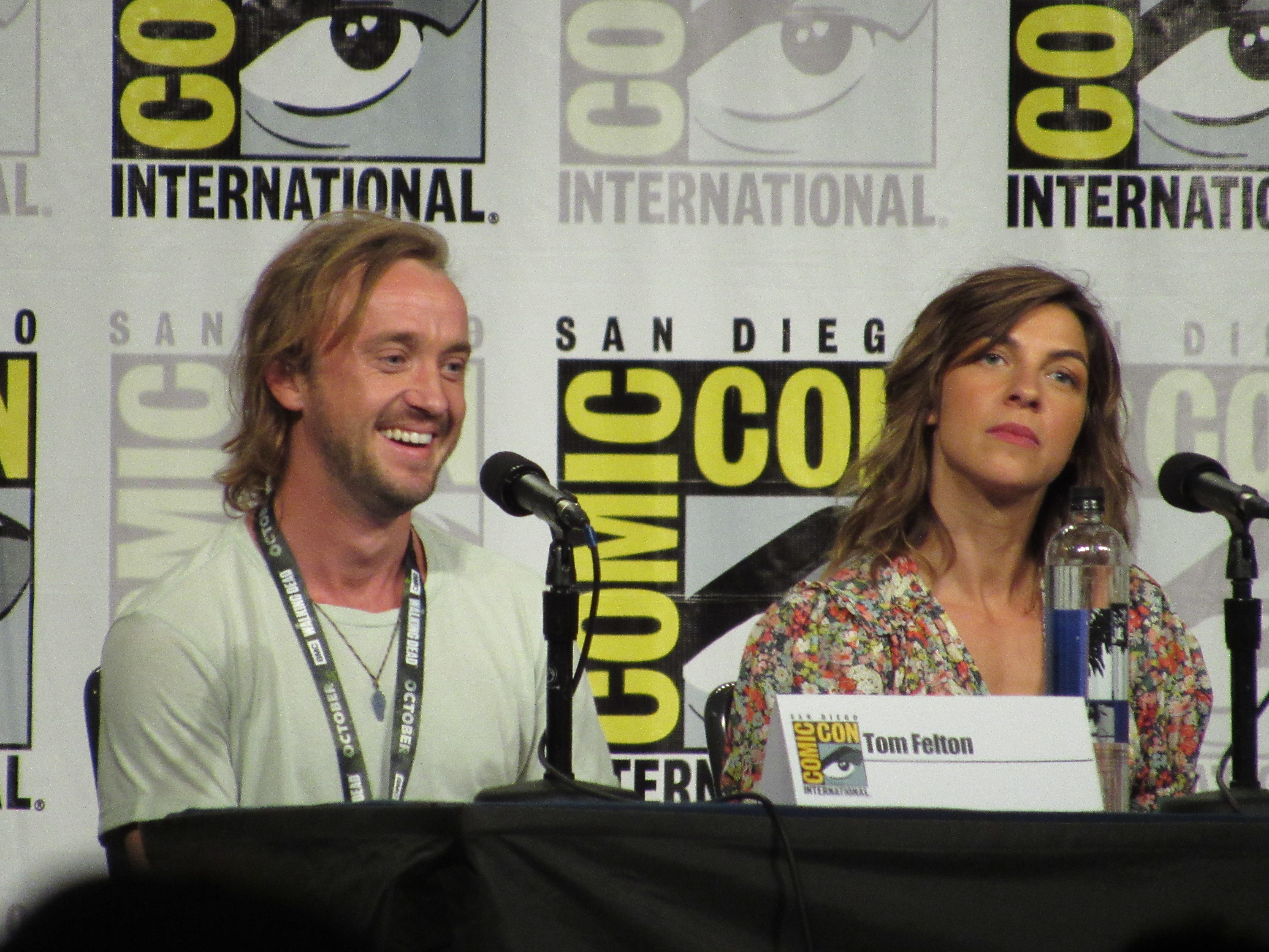 Another question was about the similarities between Tom Felton’s character on Origin and his character on Harry Potter. Felton acknowledged that reviews of the show compare his character in Origin to Draco Malfoy. He commented, “One was a wizard with crap parents, the other is a petty drug dealer from California. I really could not align those two.” However, he did admit his character on Origin is “not the friendliest person in the world, I guess you could say that.”