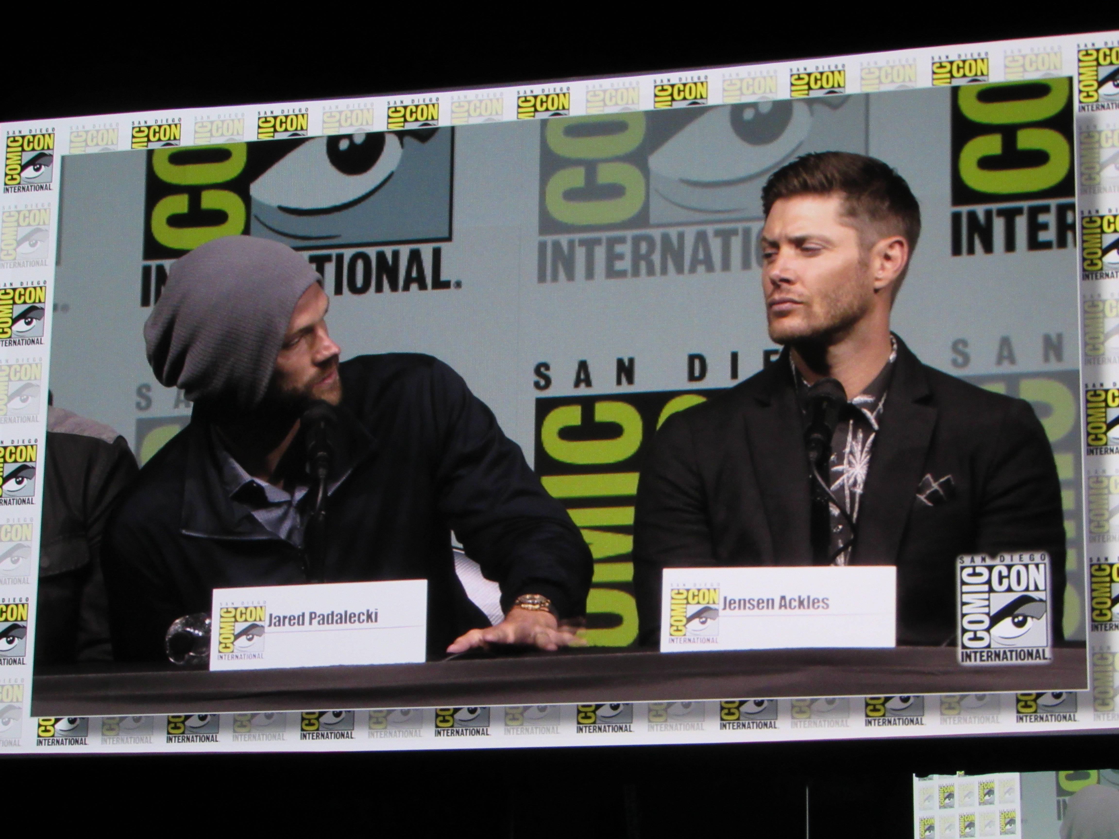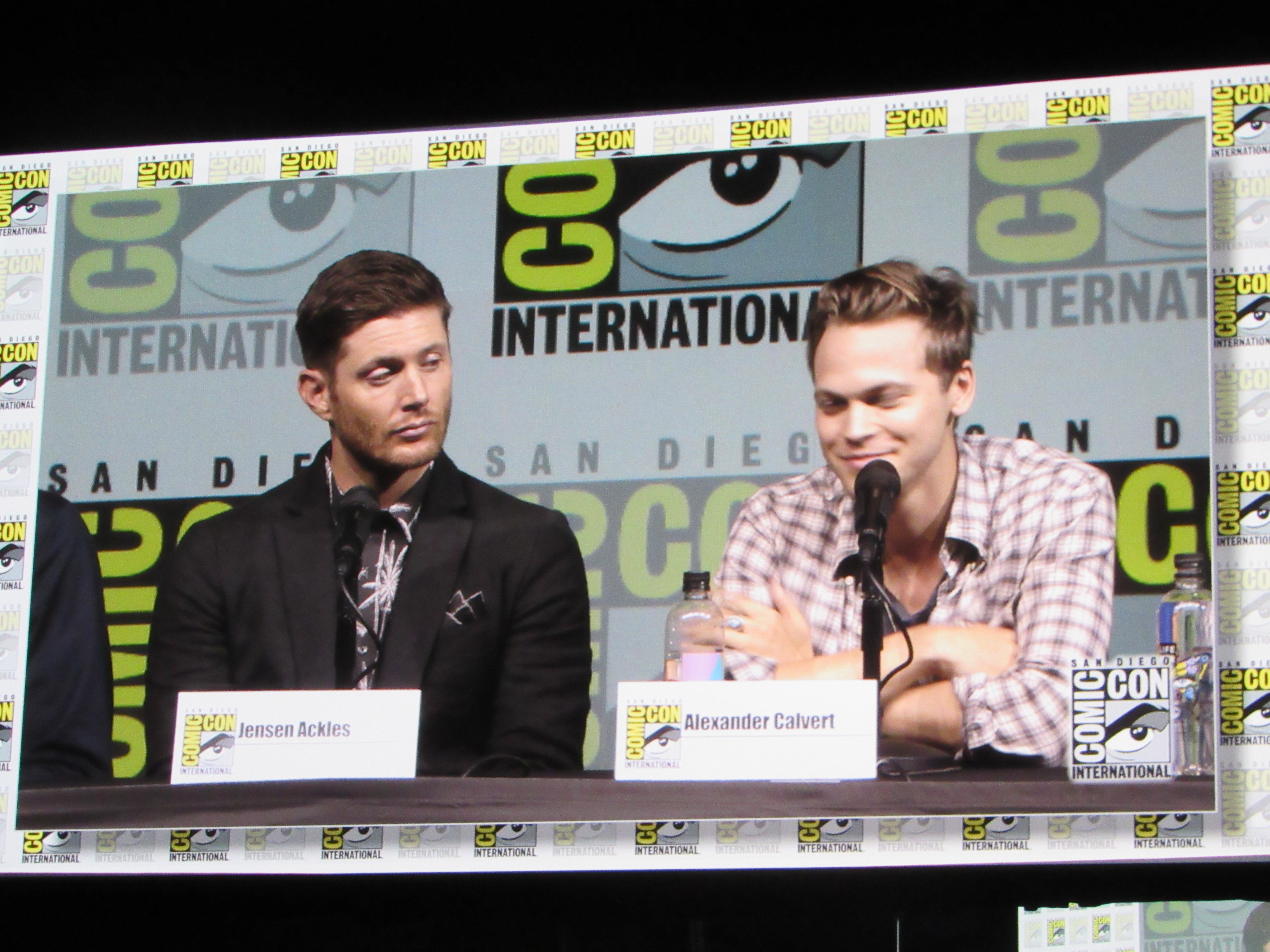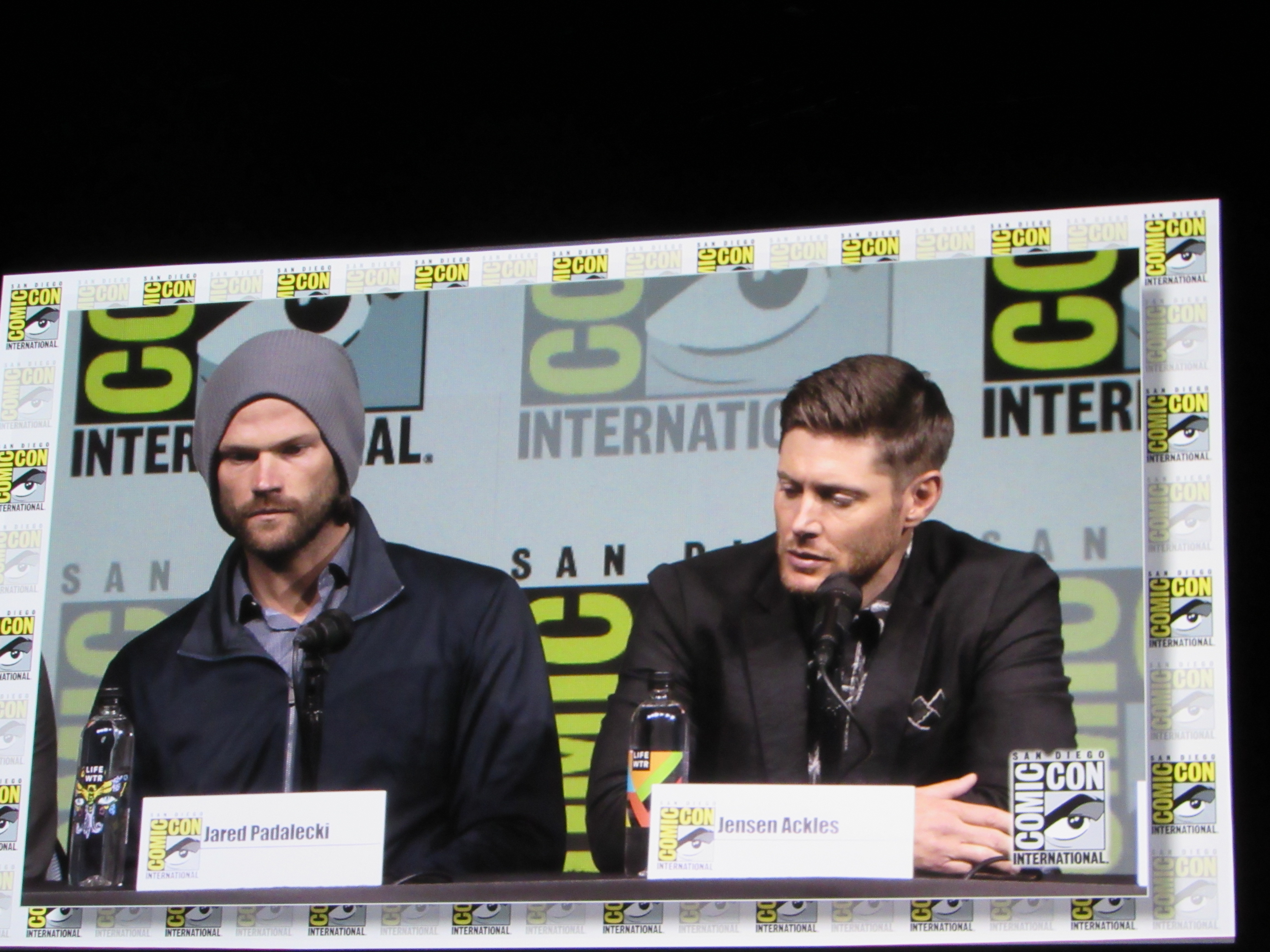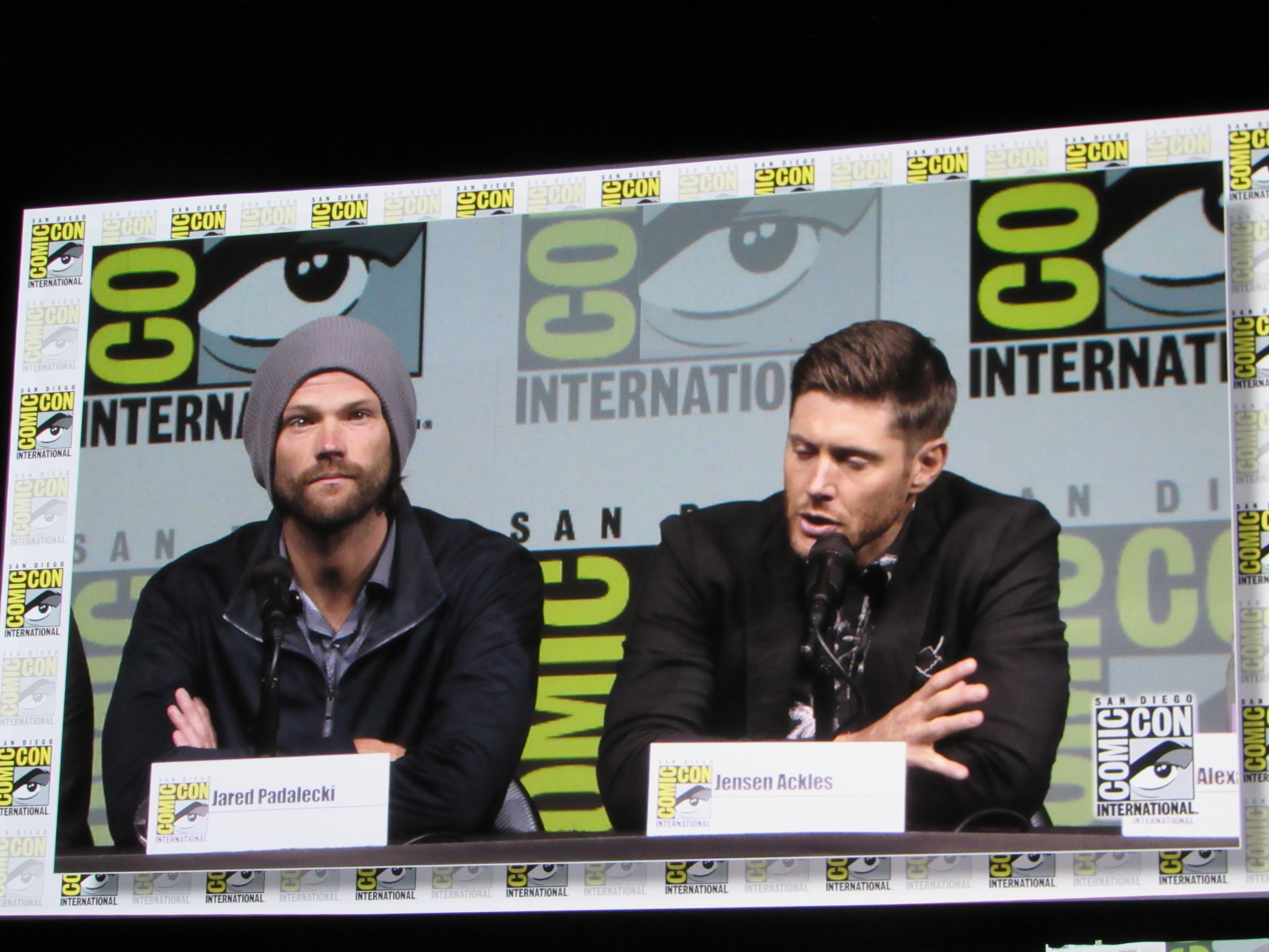 The panelists then joined the stage, which included executive producers and showrunners Robert Singer and Andrew Dabb, executive producers and writing team Eugenie Ross-Leming and Brad Buckner, and cast members Alexander Calvert (Jack), Misha Collins (Castiel), and finally the Winchester Brothers themselves, Jensen Ackles (Dean) and Jared Padalecki (Sam).