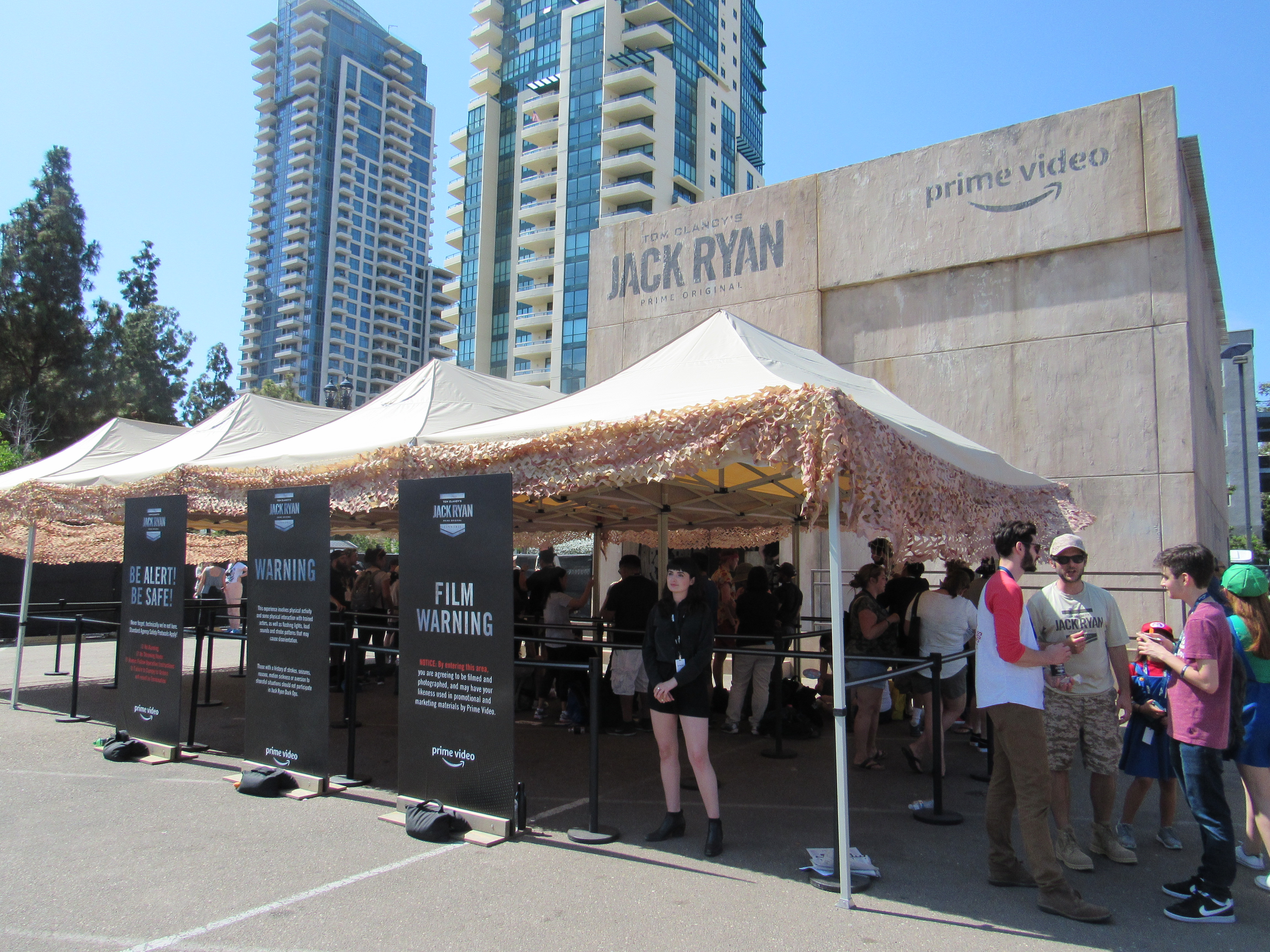 Friday morning of SDCC 2018, we had planned to hit the offsite for Amazon’s Jack Ryan. Jack Ryan is a character from Tom Clancy’s books, which typically are based on political and espionage plots. For those curious about the show, it is releasing on Prime Video, August 31st, 2018. Now onto our experience with the offsite at San Diego Comic-Con!