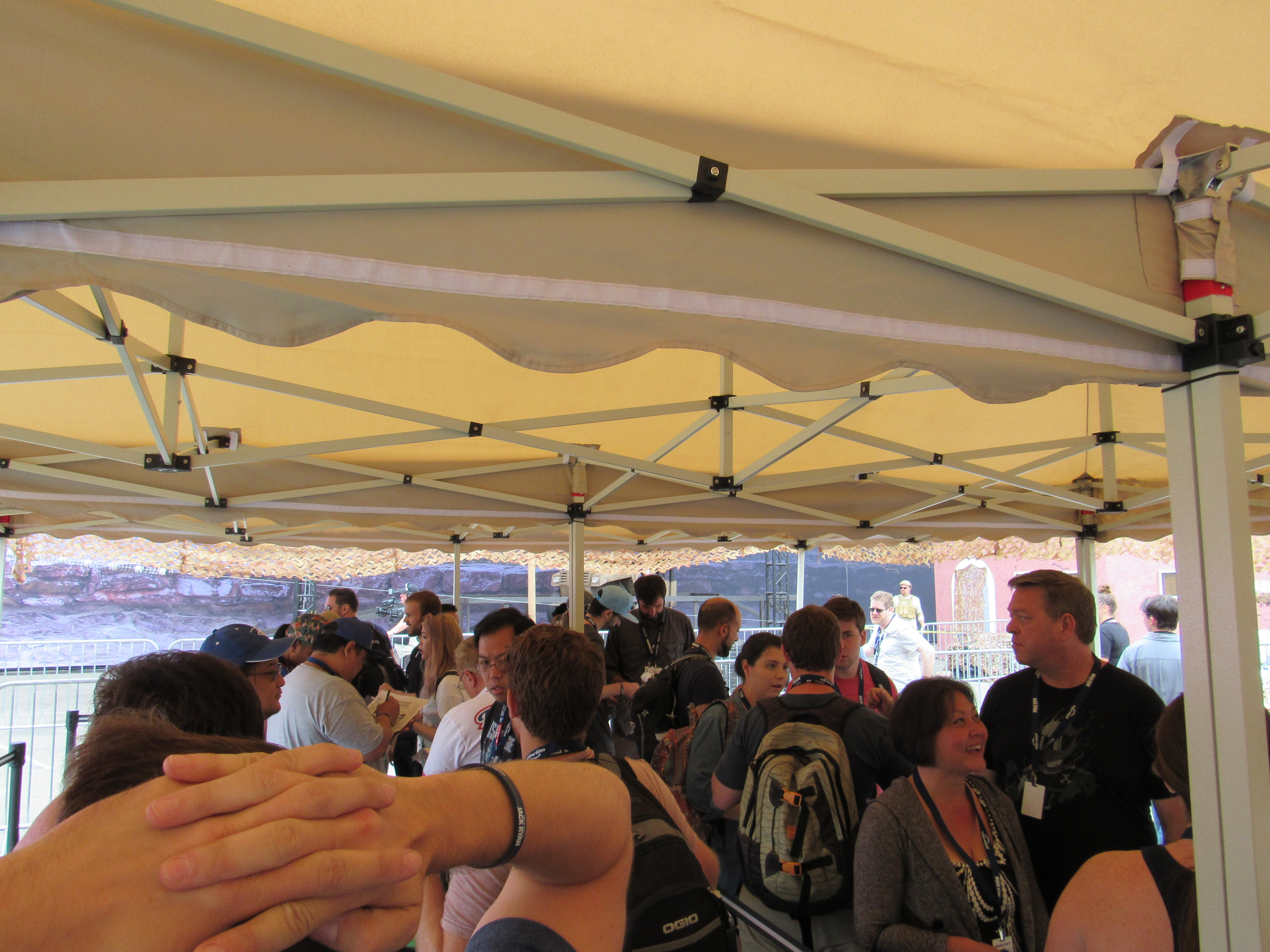 Luckily, Carlos and I decided to get some food right before the offsite opened up, because what came next for the Jack Ryan Experience was a bit of an annoyance, and that is an understatement. We got into the offsite, and did our registration at their computers which asks some basic information about who we are, and our experience with Prime Video and related matters. Then we get a printed “Analyst Badge” to wear. From there we get to move to wherever we want, and we hit the VR obstacle line right away. We were still pretty far back in line, probably in the thirties by the time we got through, but still, well within the 100 they said would be allowed into it.