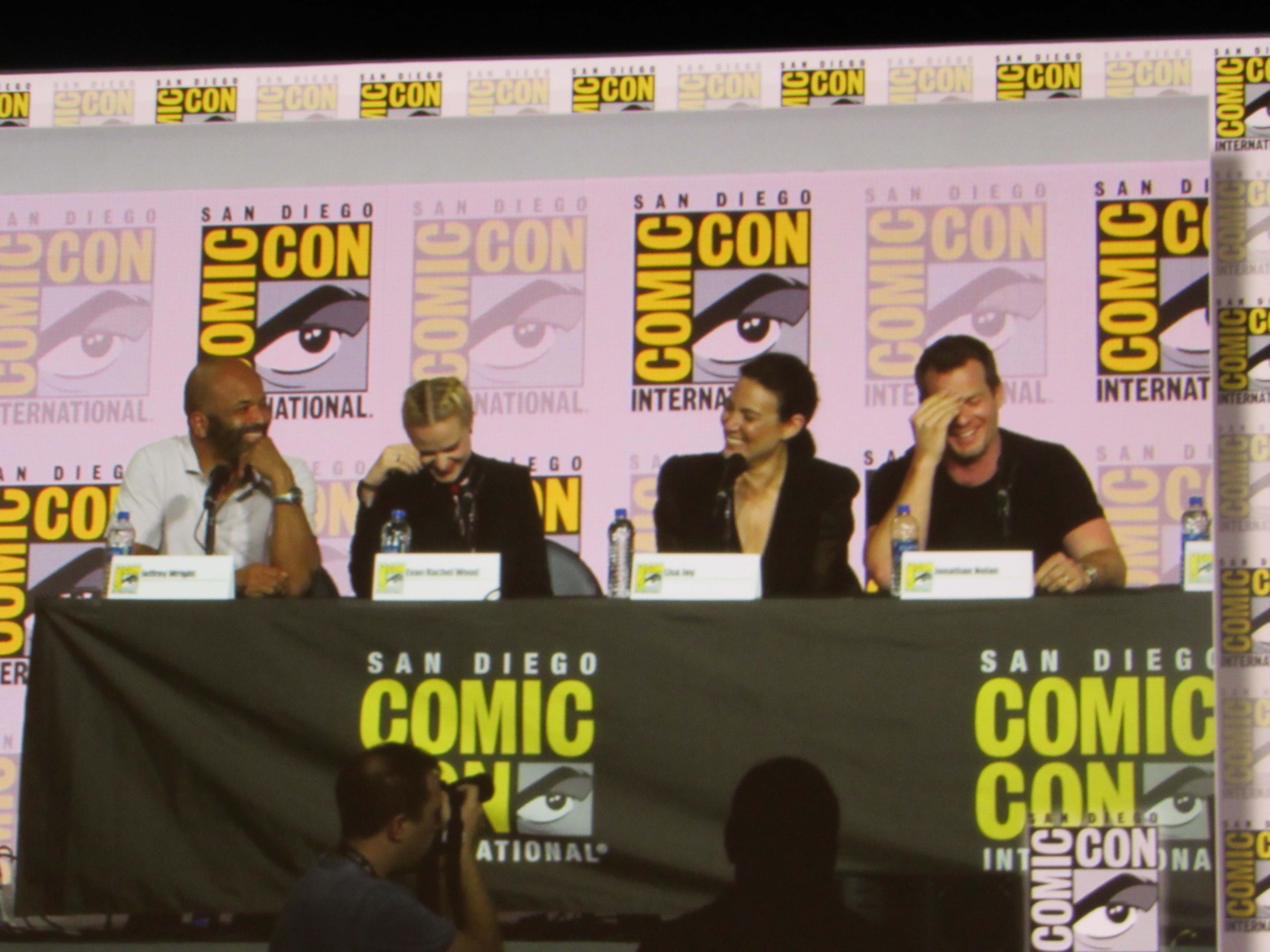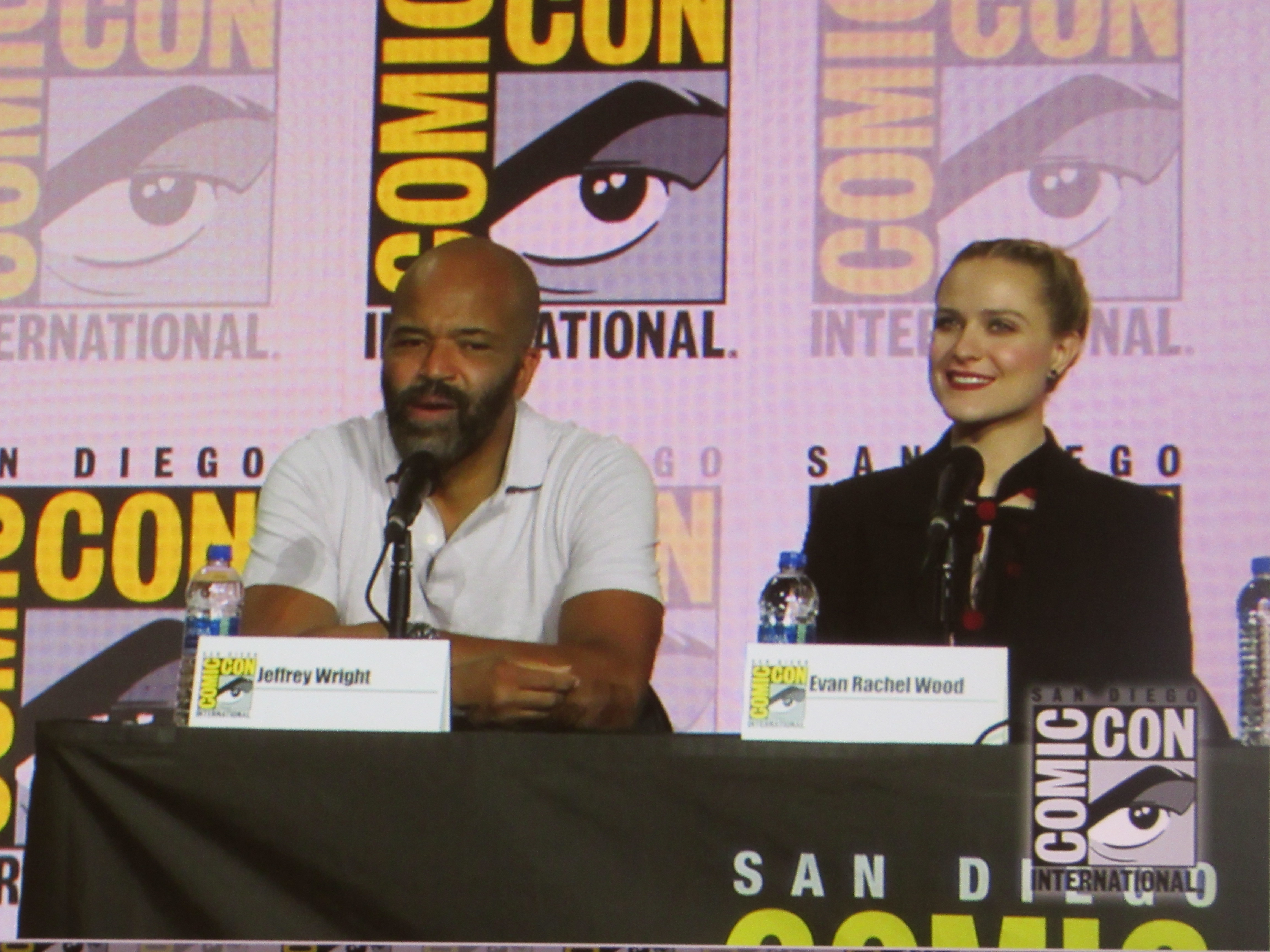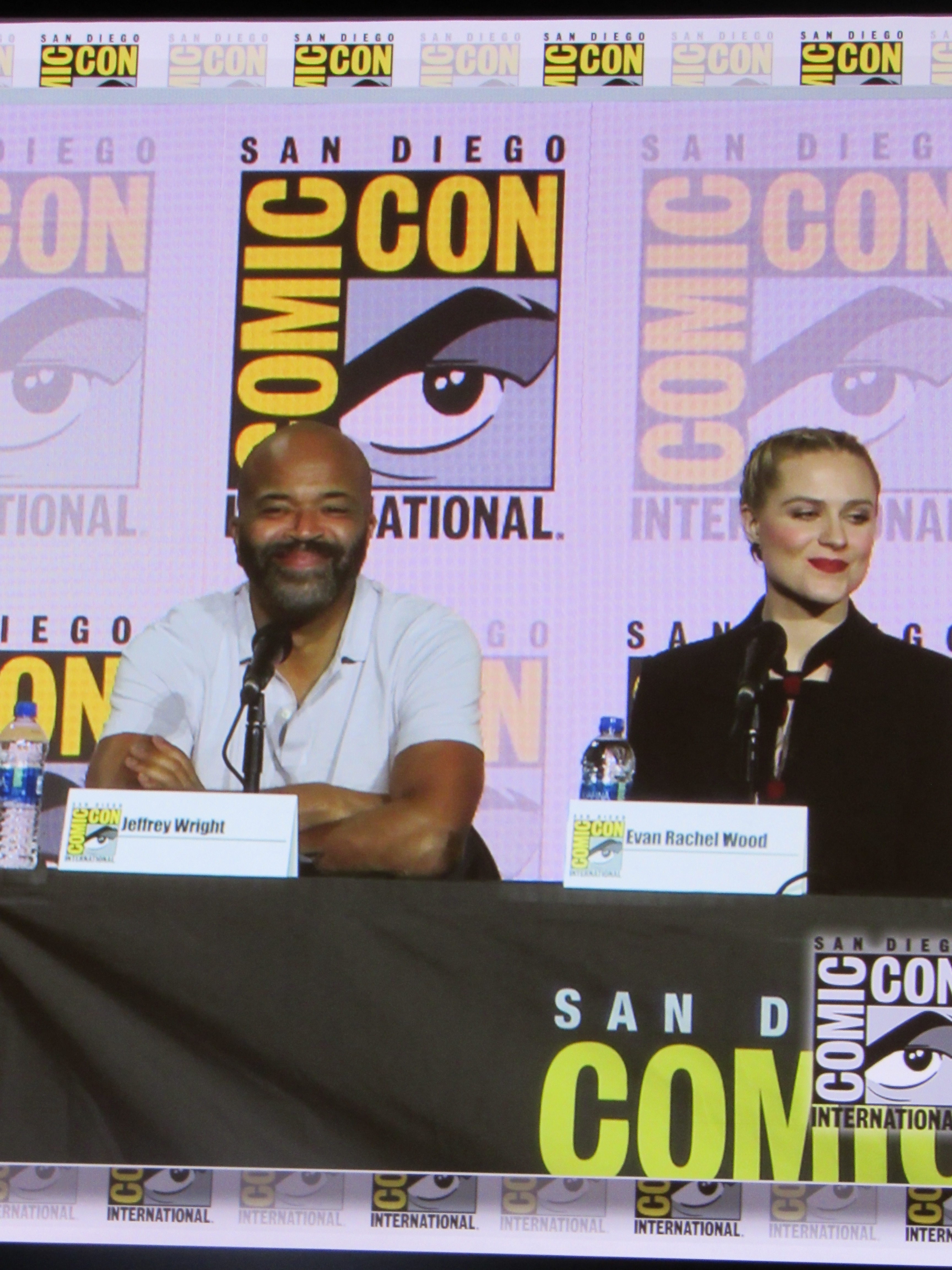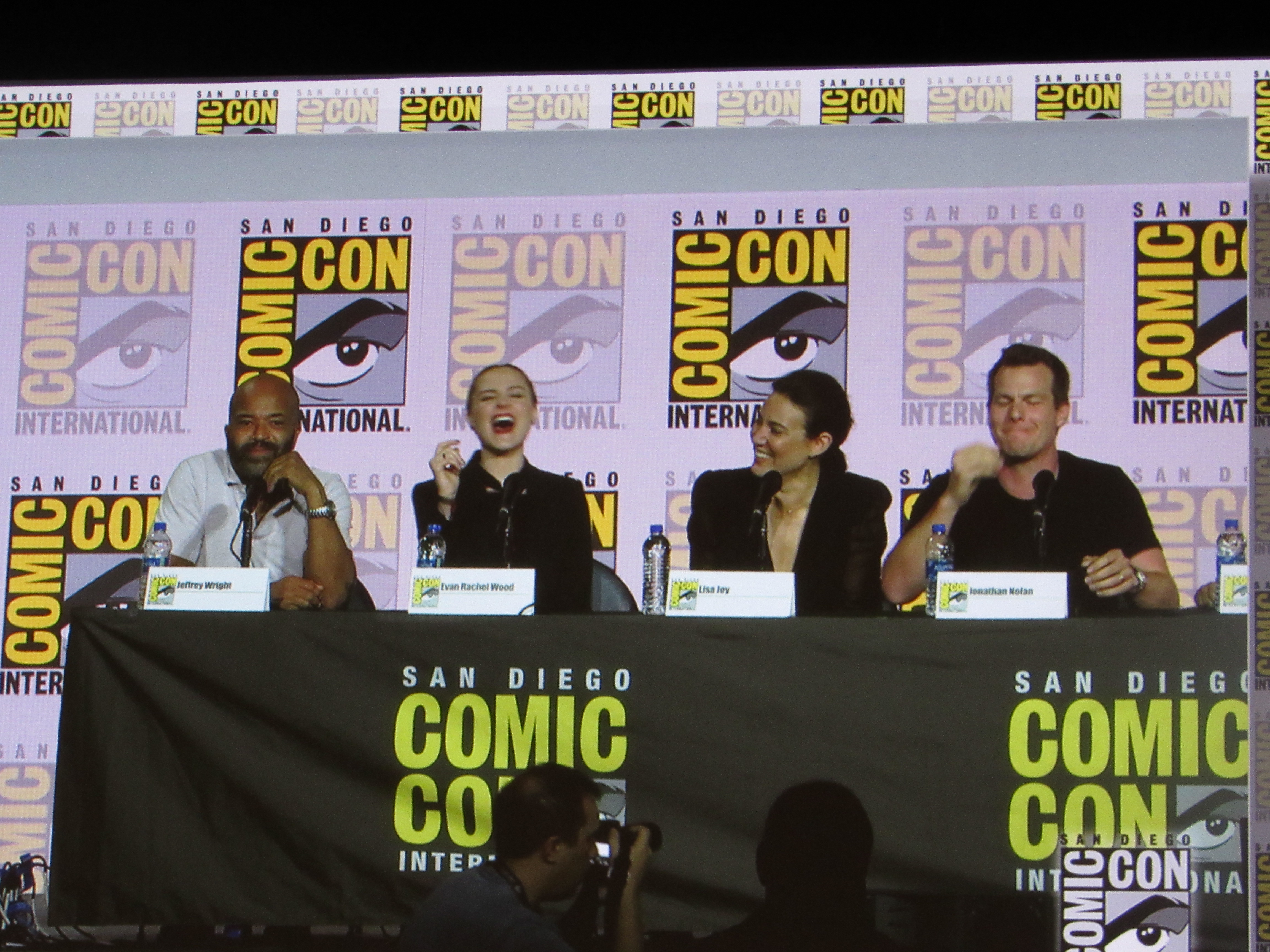 Panelists included husband and wife creators Jonathan (“Jonah”) Nolan and Lisa Joy, as well as cast members Jeffrey Wright, Evan Rachel Wood, Thandie Newton, Tessa Thompson, and newcomer Aaron Paul.