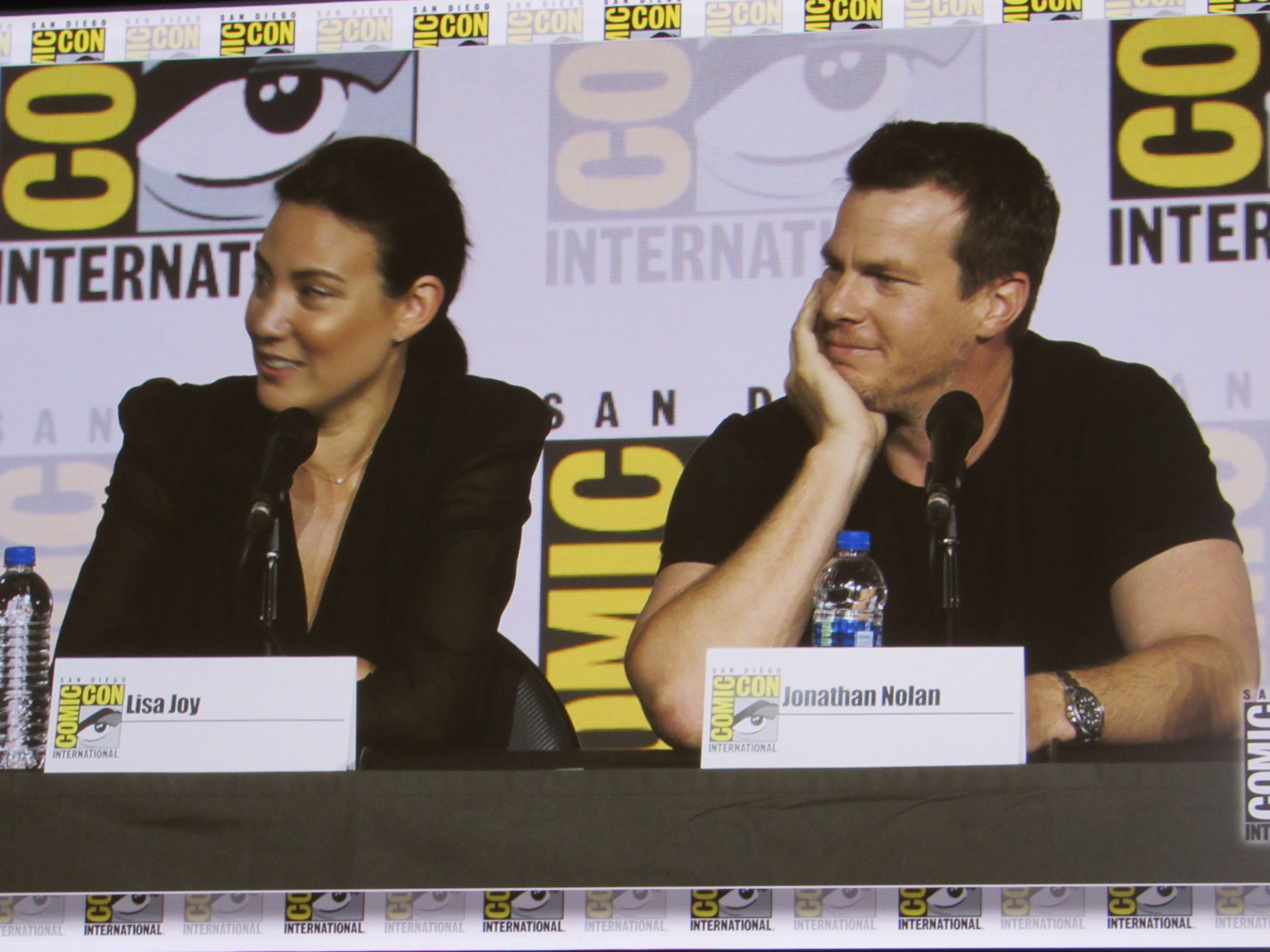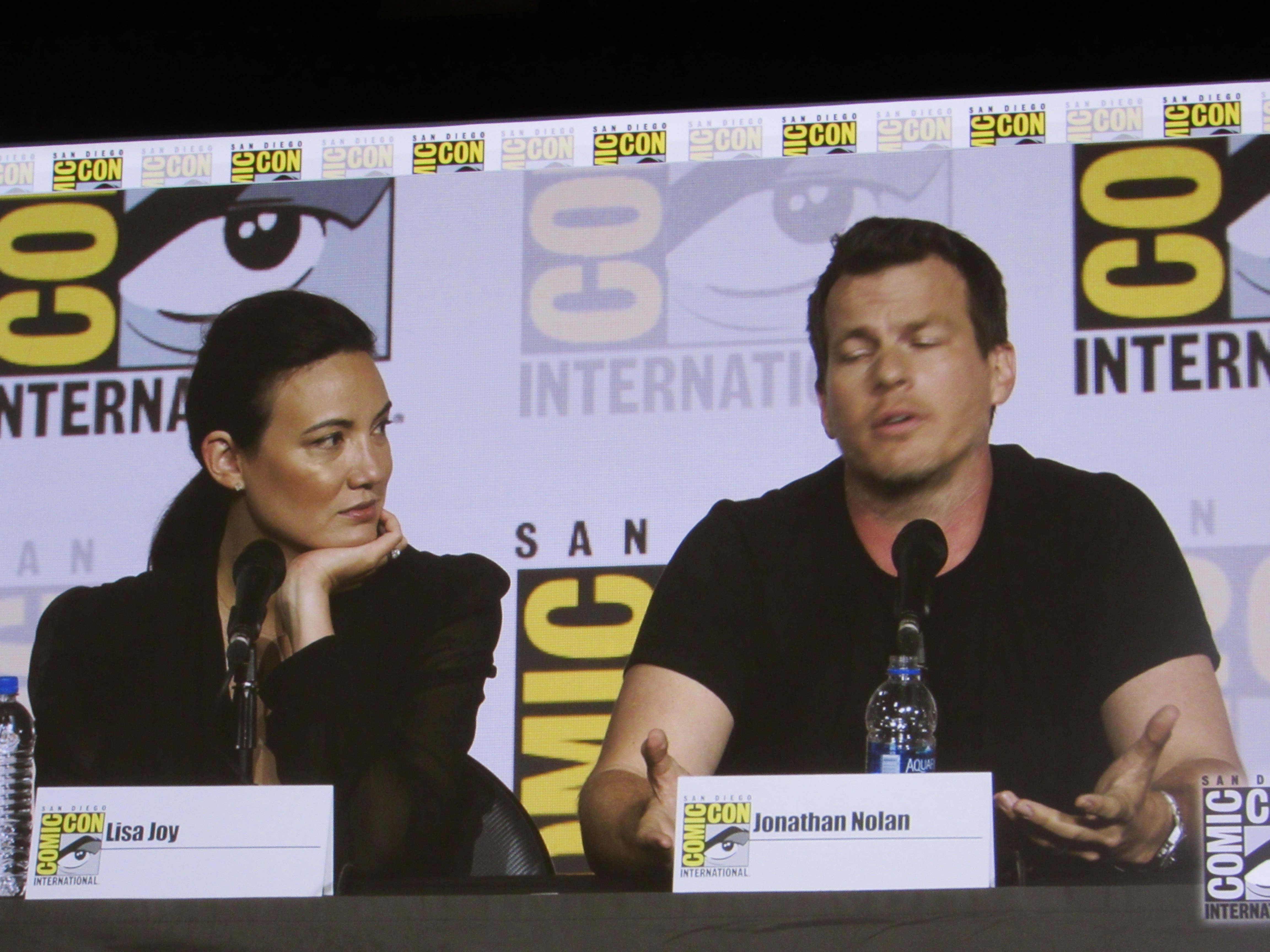 The moderator tried to ask questions about the Man in Black, what that final scene after the end credits of Season 2 mean, and whether he will be back in Season 3. Jonah joked that Ed Harris (who plays the Man in Black) had a big gun and he didn’t want to call him to tell him he’s not on the show anymore. As for whether Logan is coming back, Lisa and Jonah would not say.