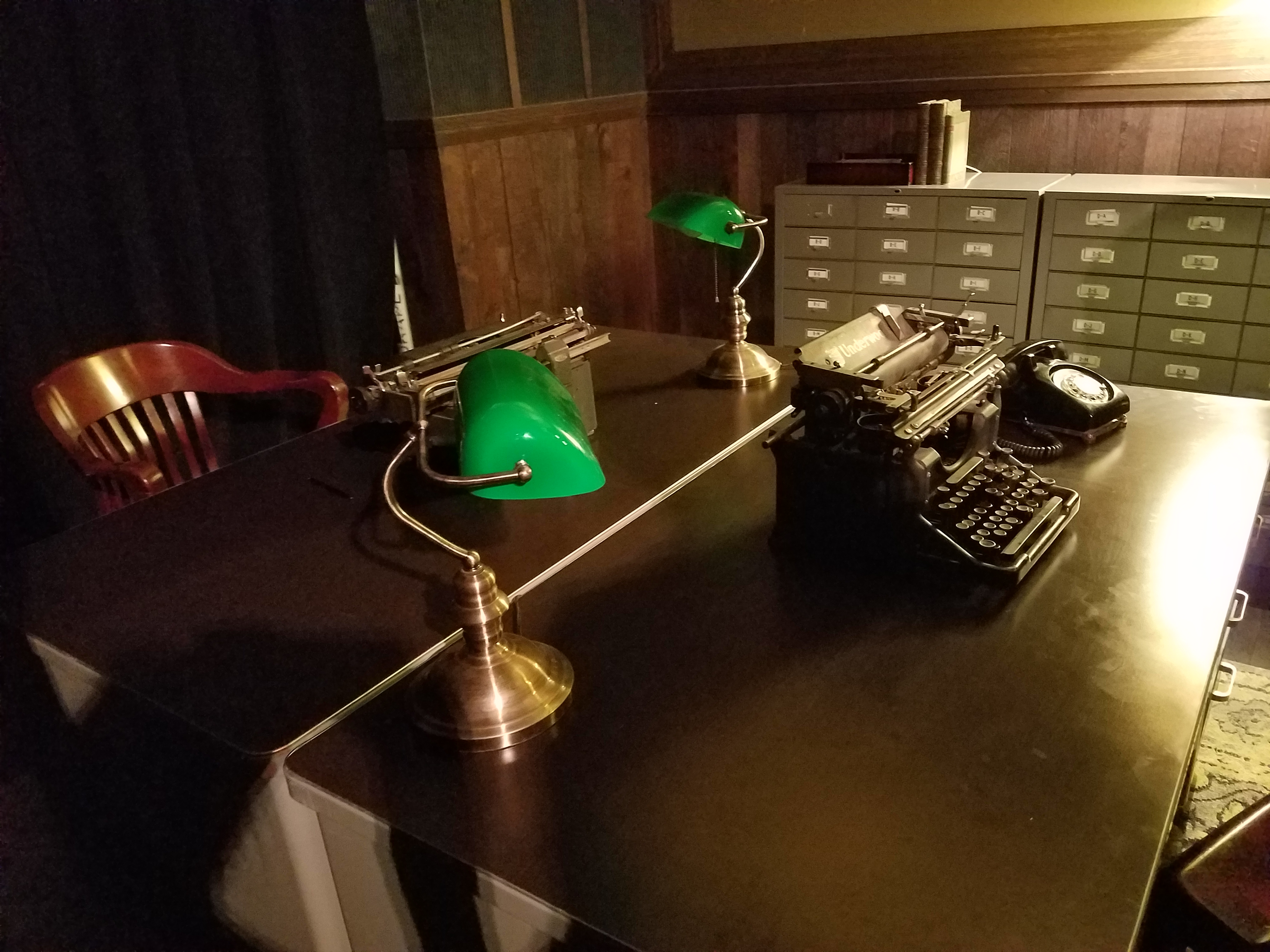 In the next room was an office with desks and typewriters. This was where we could show the attendant that we had downloaded the EPIX app. In exchange, we were given a Raven Society pin.