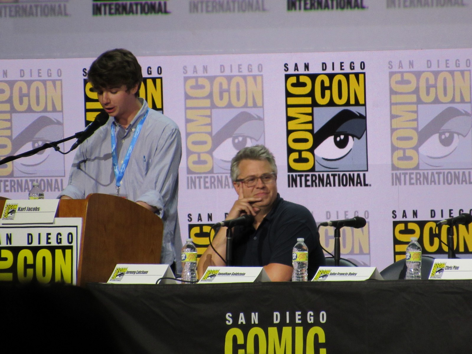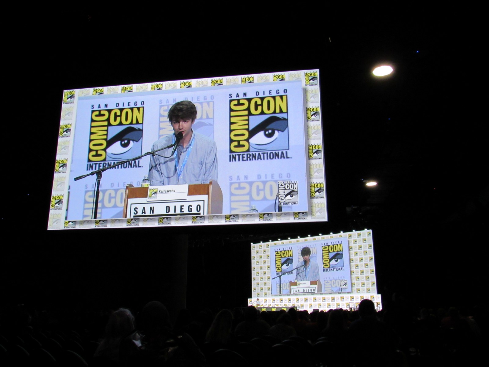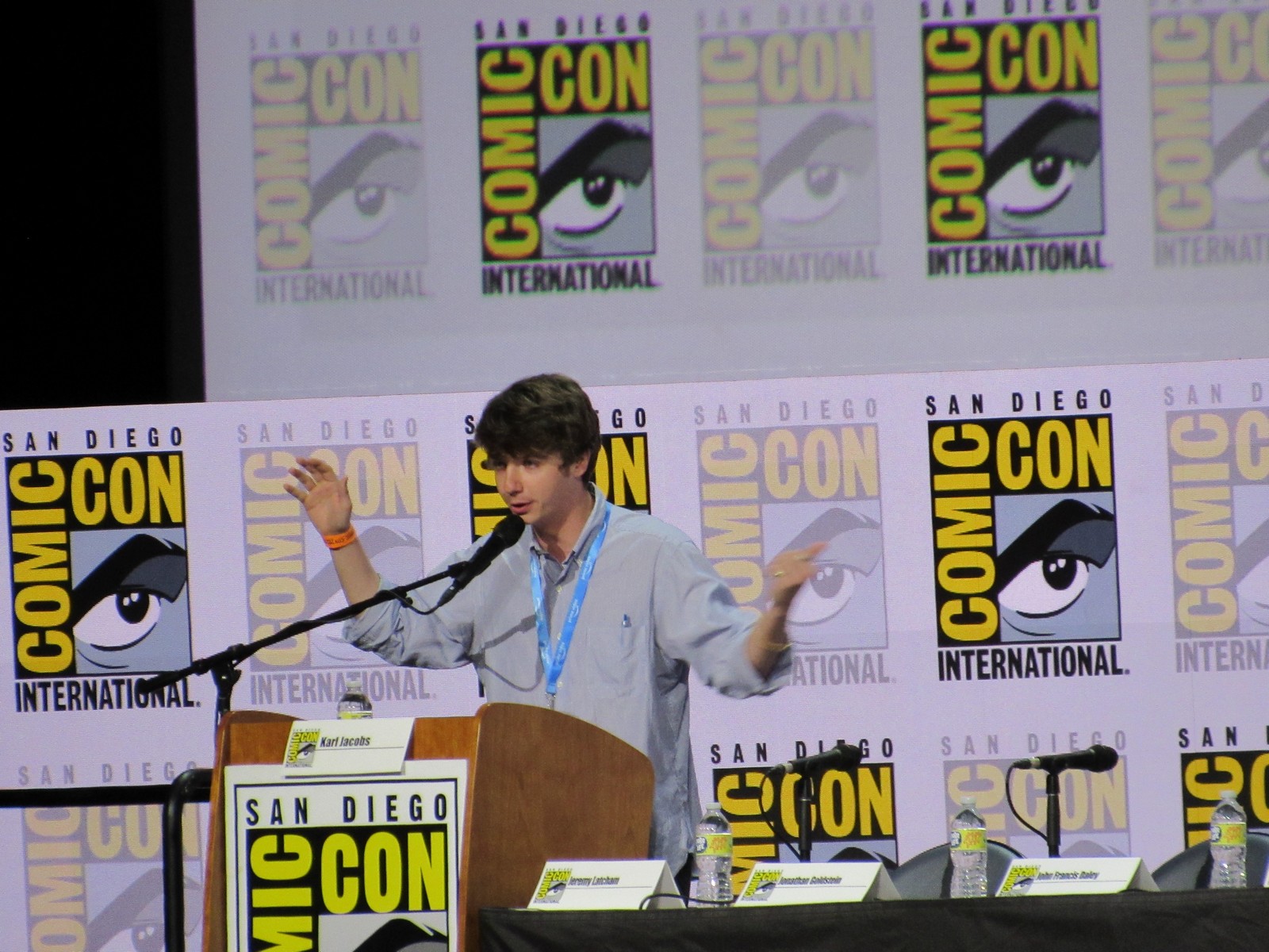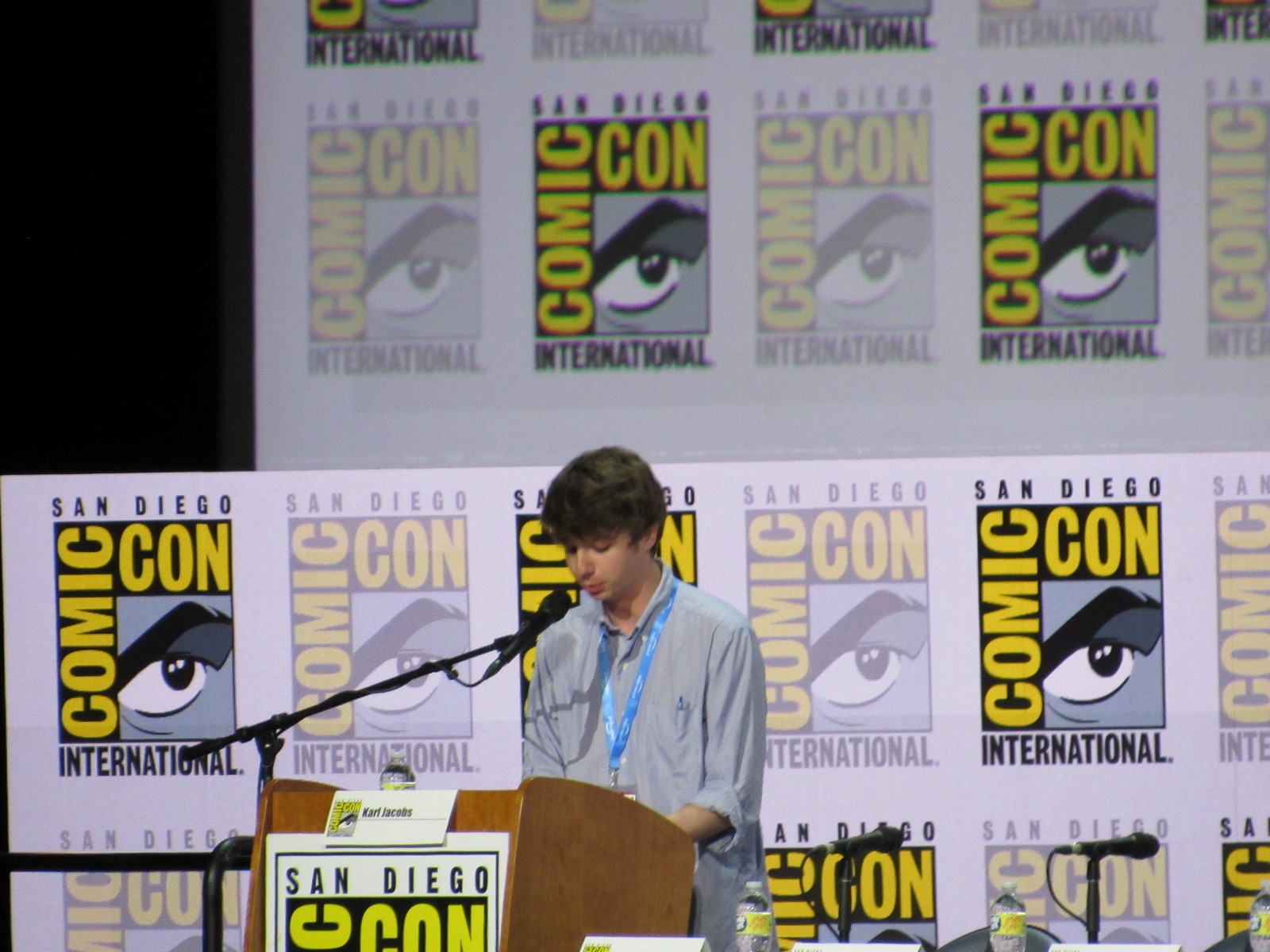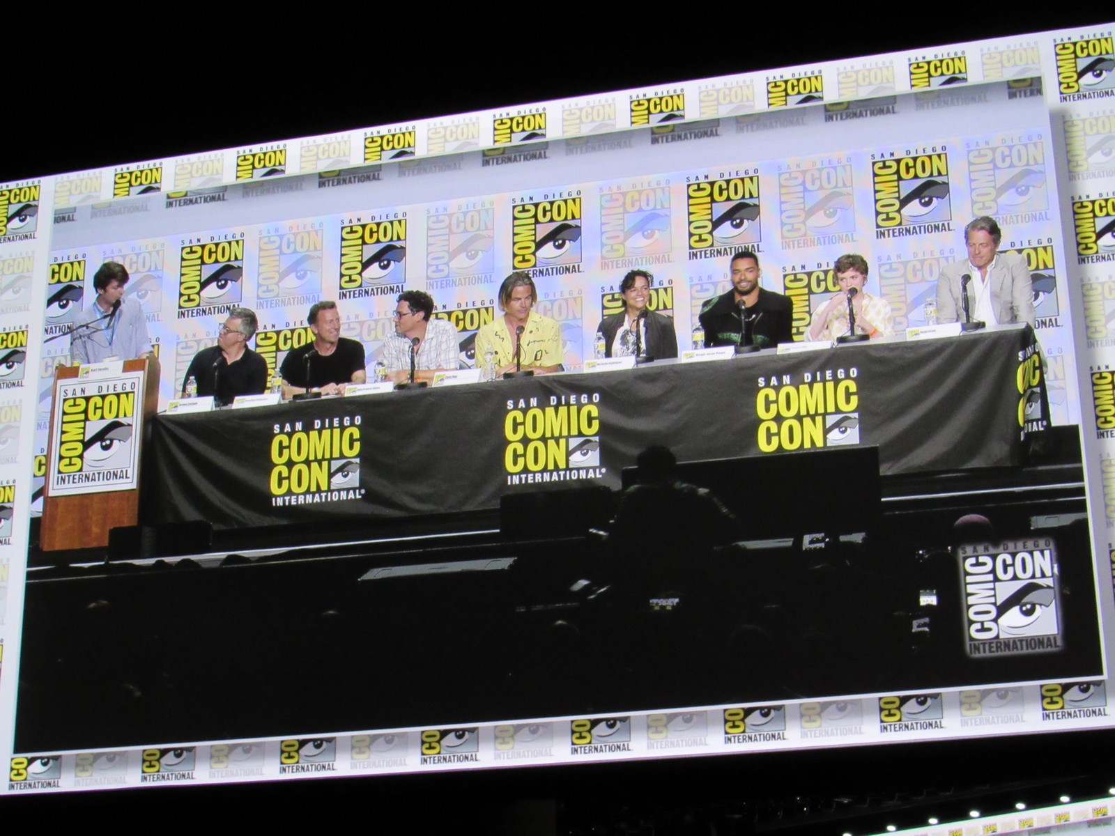 It was pretty exciting to be back for the first panel at Hall H in three years! Although the panel was supposed to start at 12pm, it didn’t end up starting until about 12:15pm. I suppose they wanted to give the attendees outside a little more time to get into Hall H and fill up the room a little bit more. I’d say it ended up being about 2/3 full. The announcer guy came out and welcomed us back, then had us start a chant for Director of Programming of Comic-Con International, Eddie Ibrahim, so we chanted, “Eddie, Eddie, Eddie!” Eddie came out and welcomed us back, giving us his usual spiel about not recording any of the footage shown, etc. Just like old times…