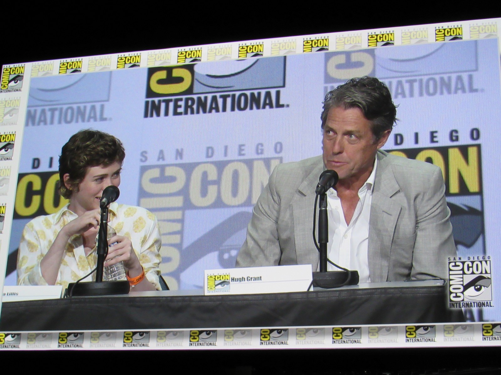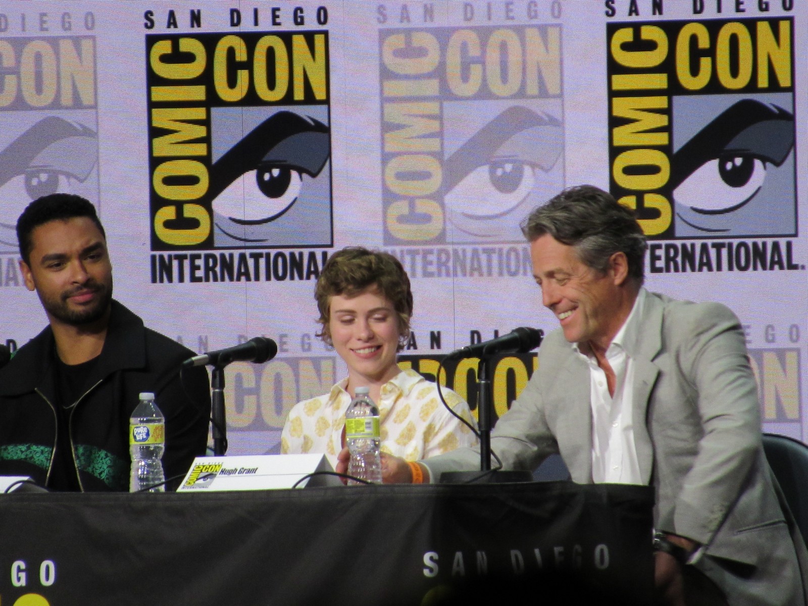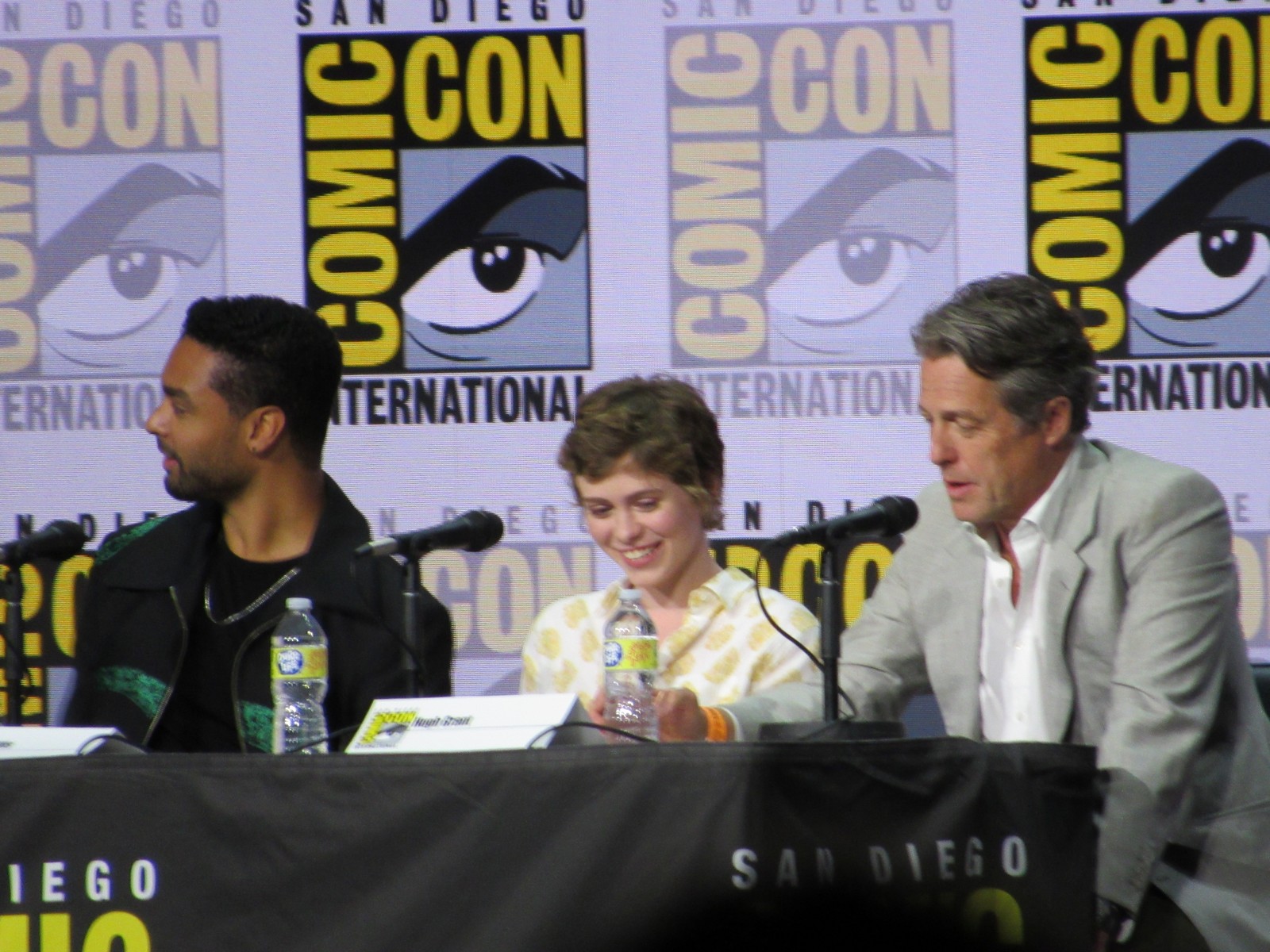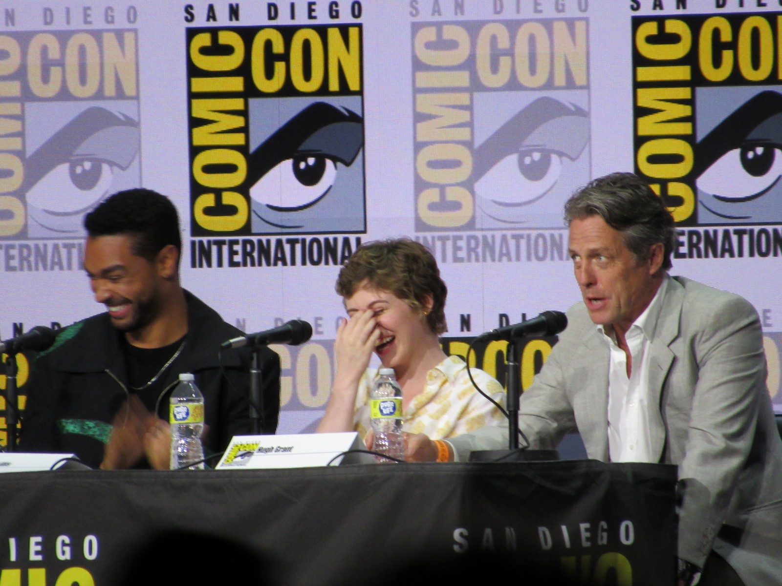 Karl mentioned that, according to his notes, Hugh Grant had always been a lifelong D&D fan, to which Michelle joked, “I think you mixed it up with S&M!” Hugh replied, “She’s not wrong. I’ve been an enthusiastic Dungeon Master for some years now.” We also learned that this was Hugh’s first Comic-Con.