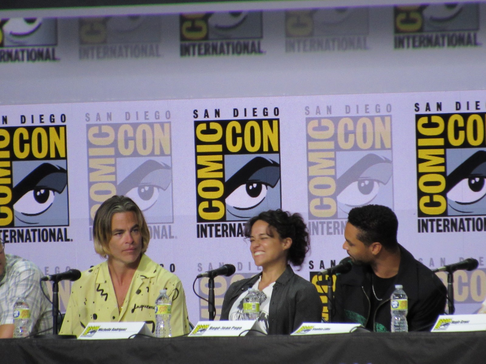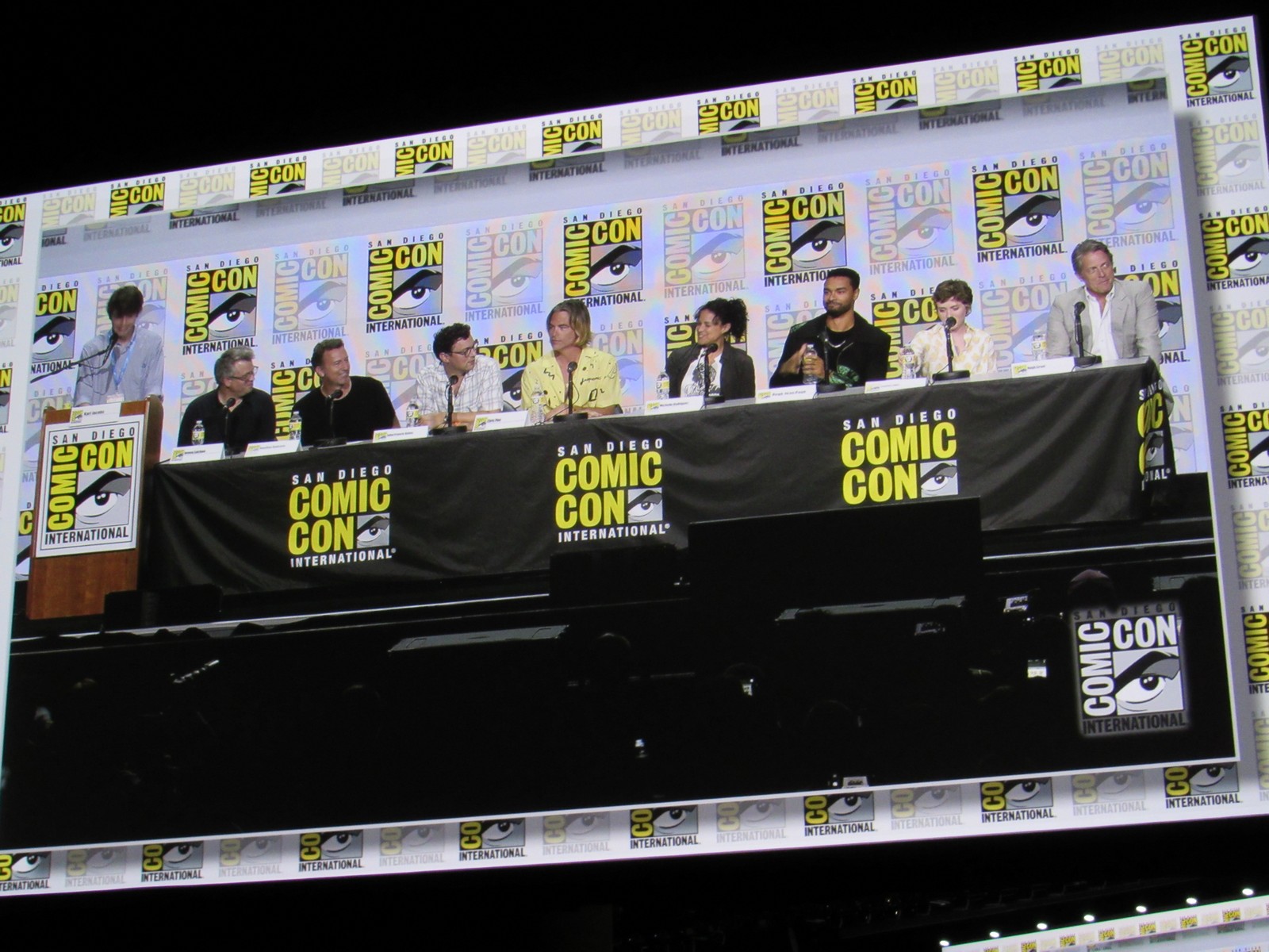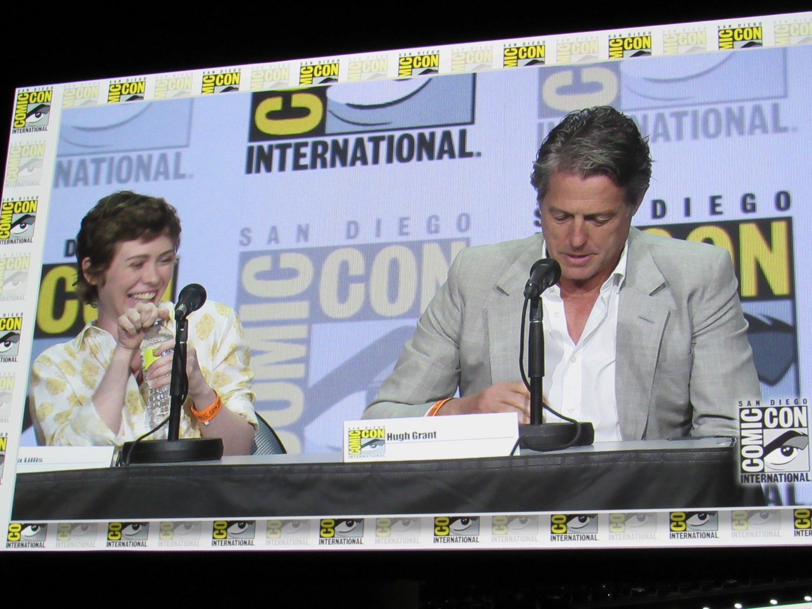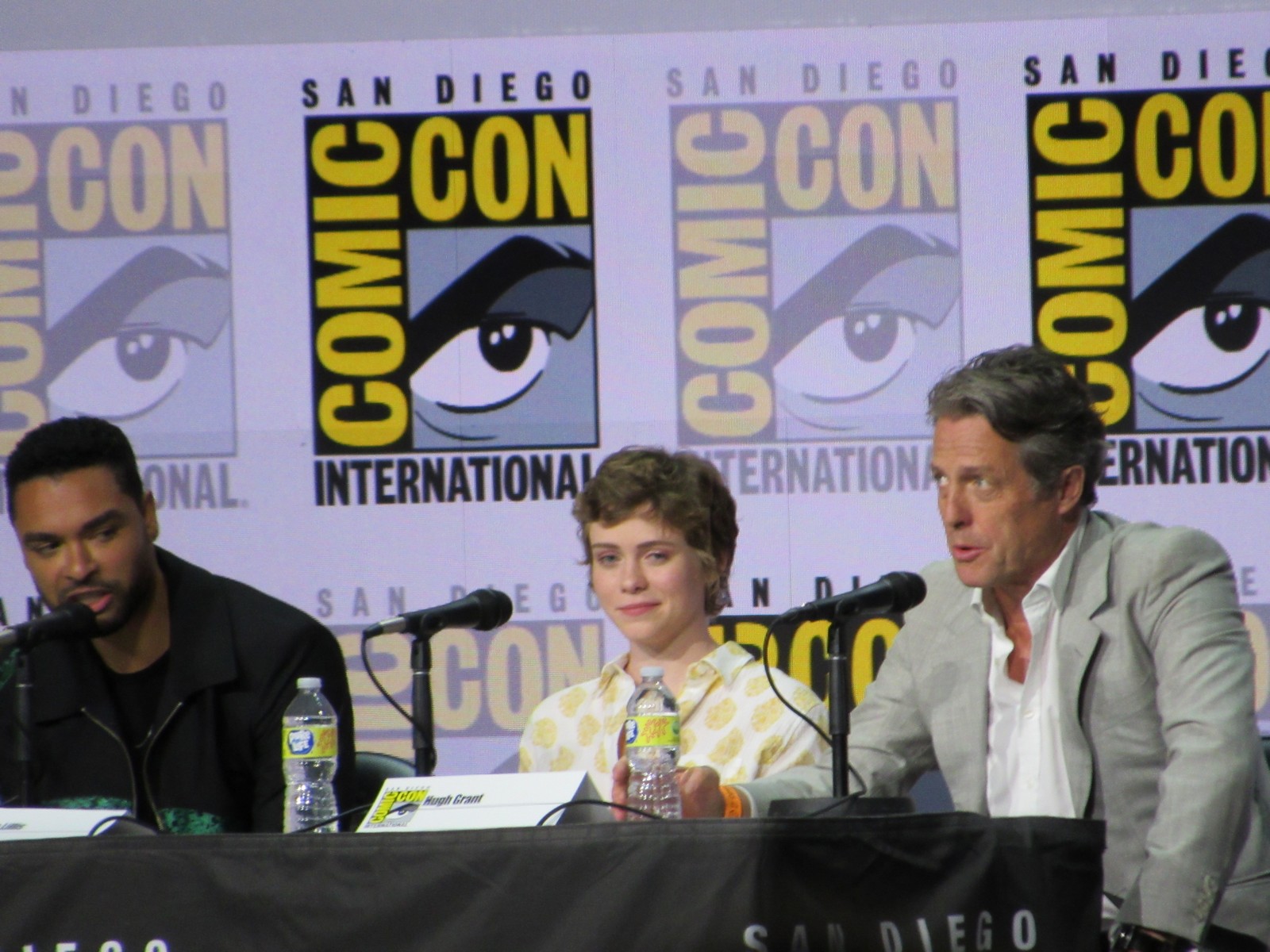Karl mentioned that, according to his notes, Hugh Grant had always been a lifelong D&D fan, to which Michelle joked, “I think you mixed it up with S&M!” Hugh replied, “She’s not wrong. I’ve been an enthusiastic Dungeon Master for some years now.” We also learned that this was Hugh’s first Comic-Con.