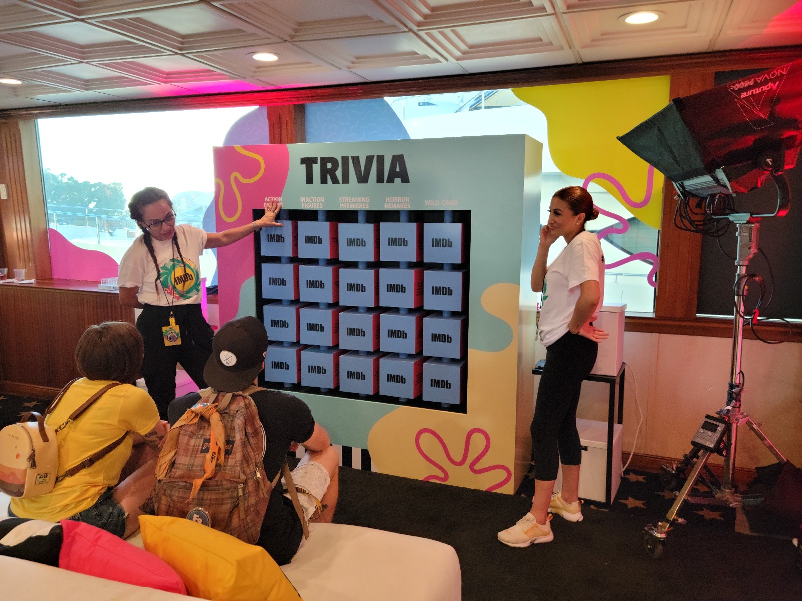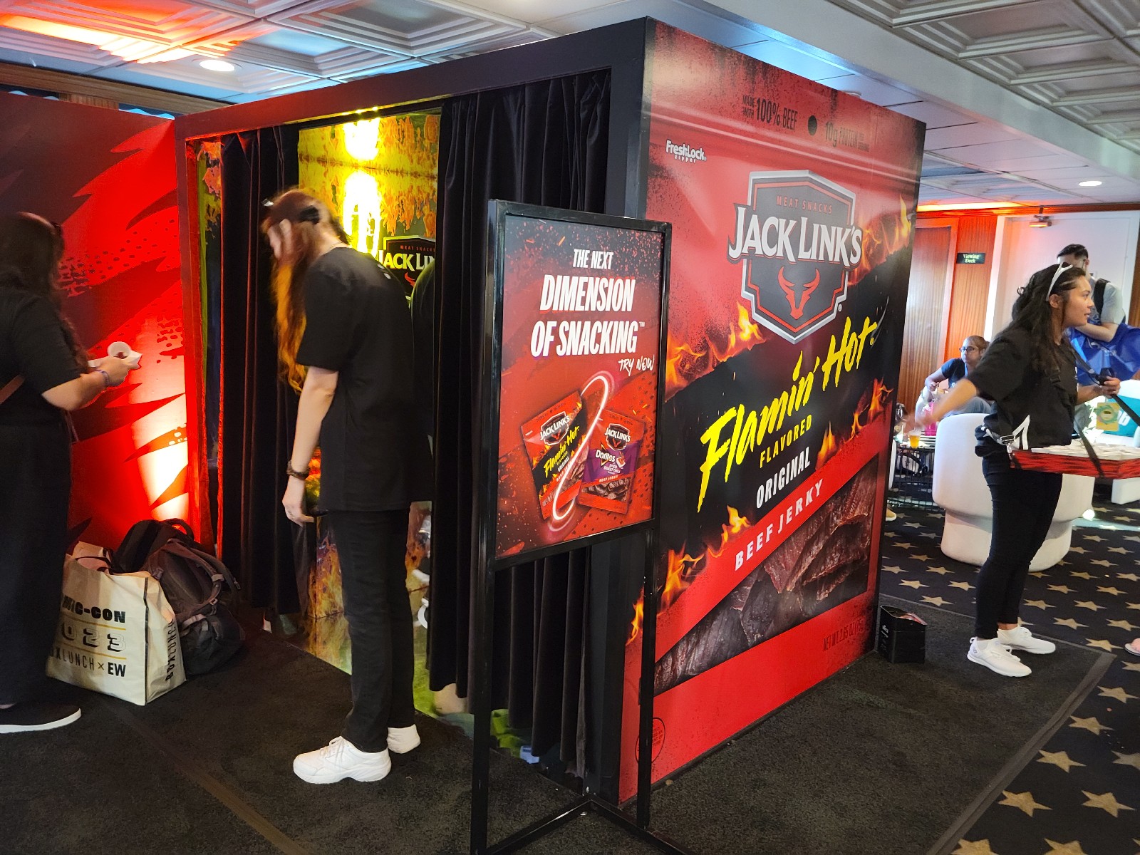 Additionally, there were a couple of other activities on this level, including a Jack Links booth, as well as IMDb Trivia, neither of which we participated in. There was a person standing outside of the Jack Links booth offering free beef jerky samples as well. We also saw standing tables set up, around which people were standing and eating food, such as fries. However, we never actually figured out where or how to get that food.