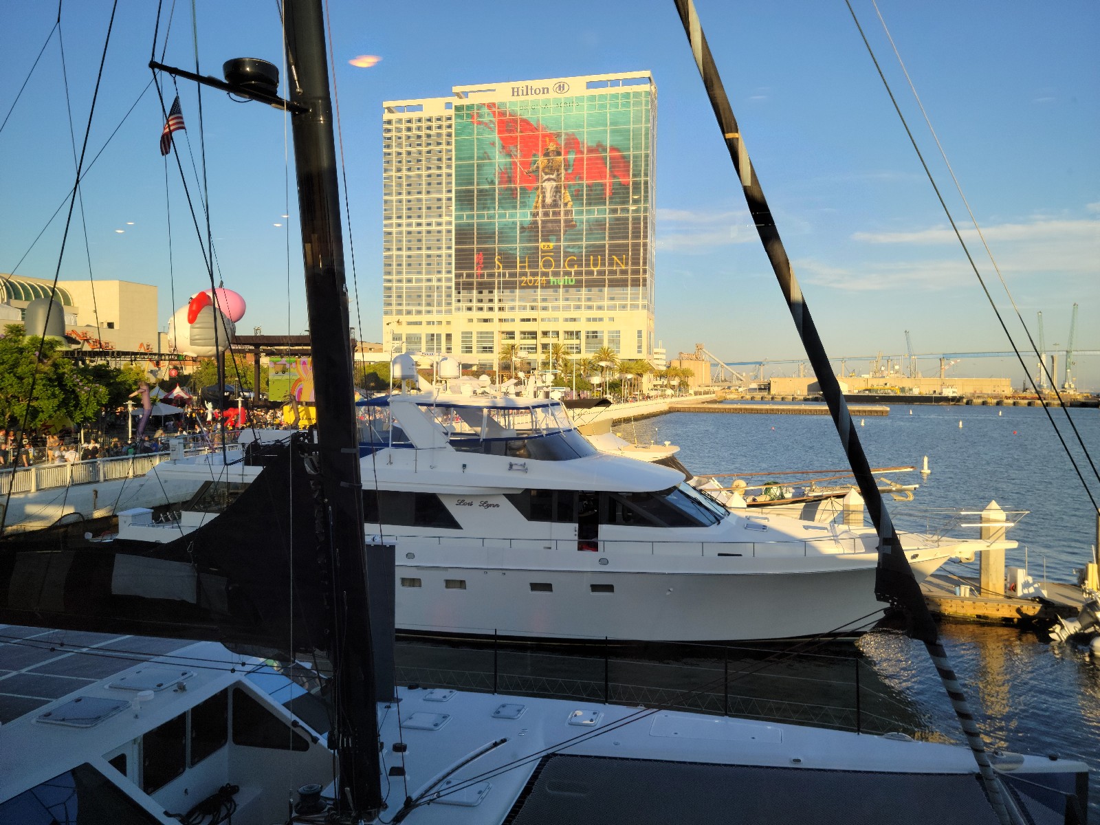 If you’ve been attending San Diego Comic-Con the past several years, you’re probably aware of the IMDboat that is always parked in the harbor behind the convention center. Thanks to being online at the right time, I was able to RSVP for the two of us to attend the LEGO DreamZzz Watch Party, and SDCC 2023 would be our first time making our way onto the IMDboat!